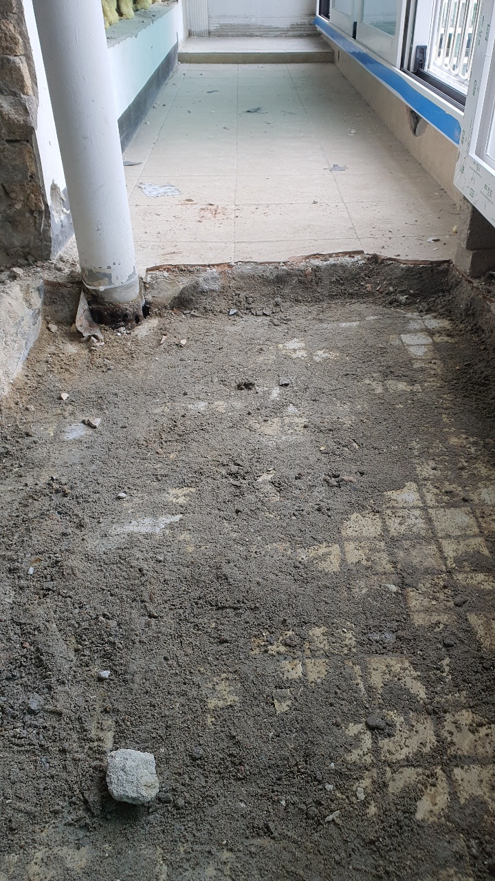 거실 확장부위에 엑셀배관 시공하기 위해서 바닥을 철거해보니 타일이 몇중으로 덧방되어있더군요.