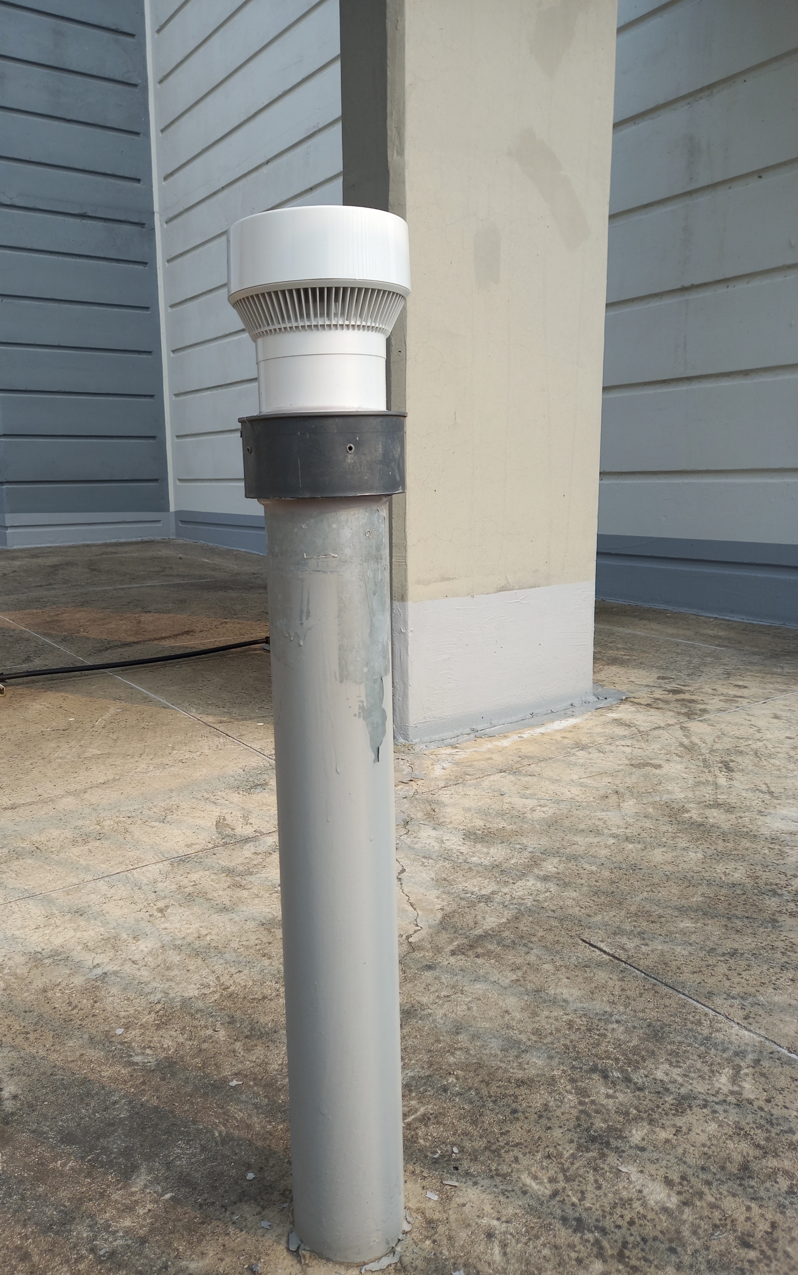최선은 배관을 꺽어서 (사실 꺽는 것이 좋은 배관의 방법은 아닙니다만..) 최상층 옥상으로 올리는 것이 좋습니다. 원래 부터 그랬어야 하고요.