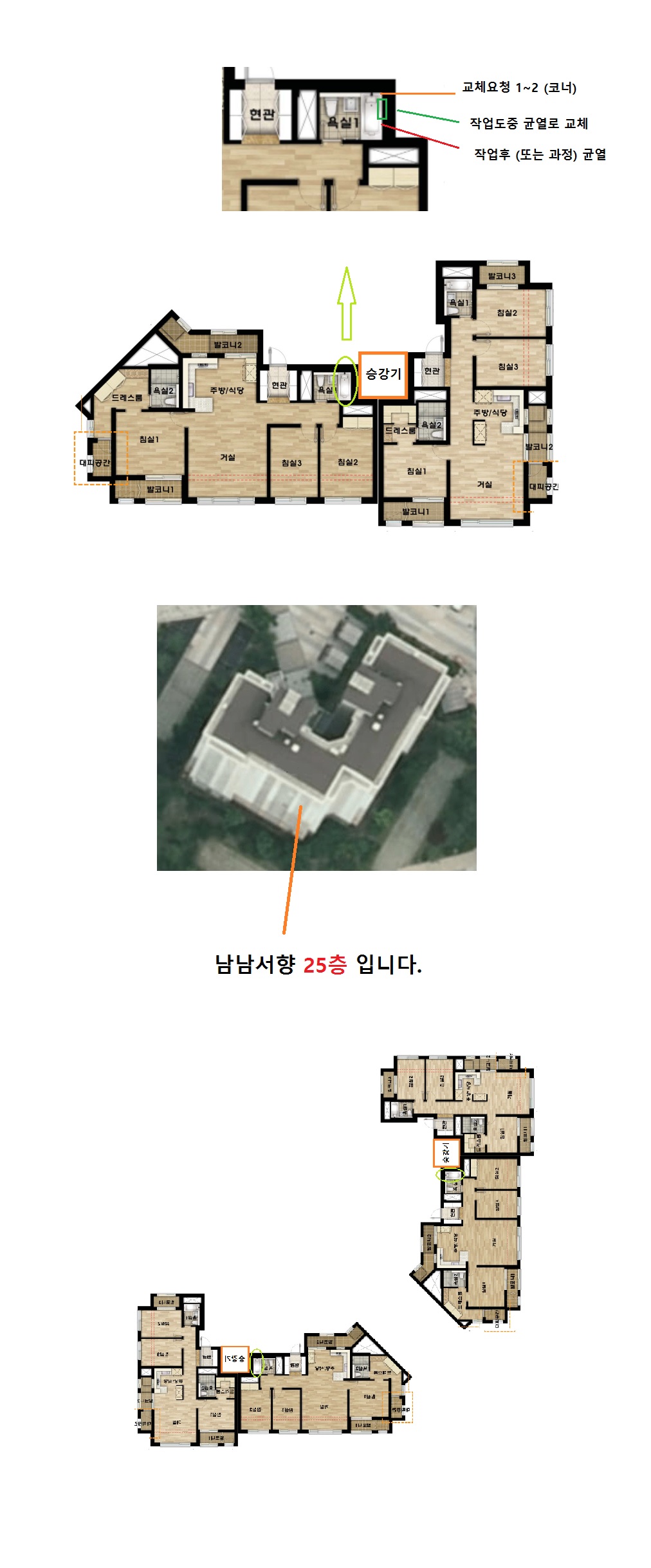 주황색 부분 - 교체가 필요했던 타일