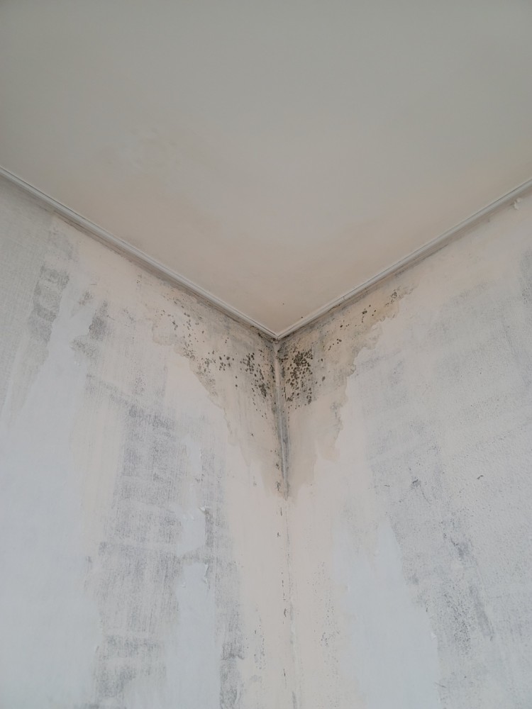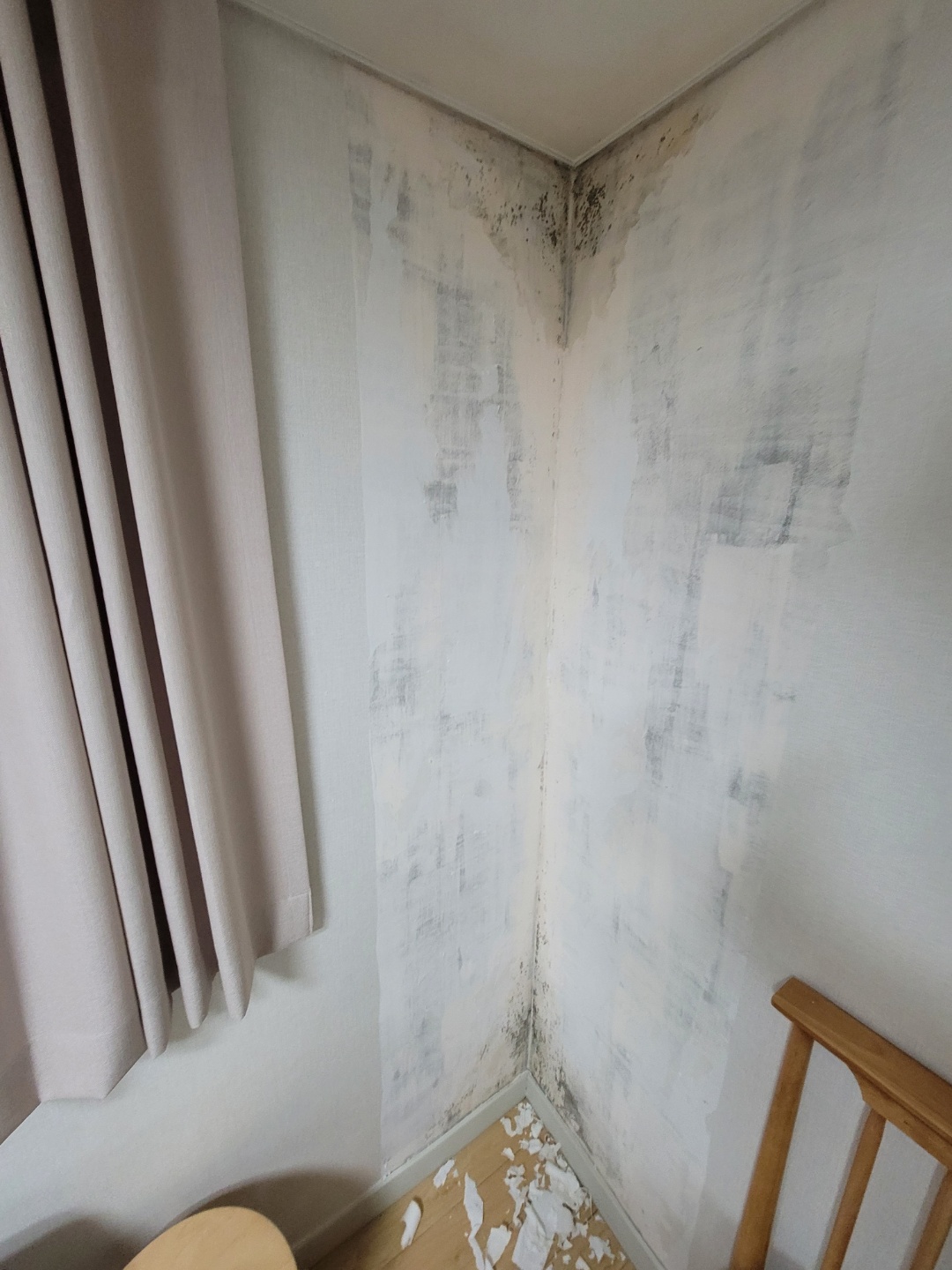 사진처럼 벽 모서리 윗쪽과 아랫쪽에 곰팡이가 피어있습니다.