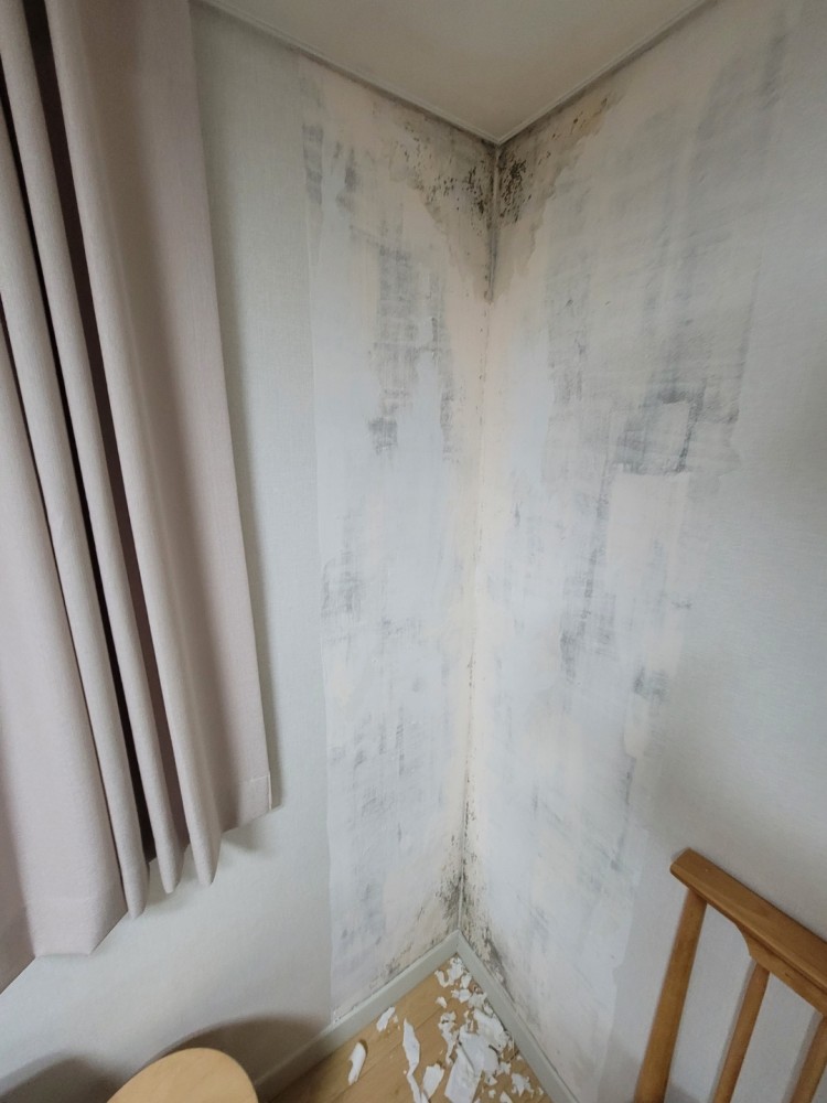 몇일전 보인 곰팡이가 심해져 벽지를 뜯어보니