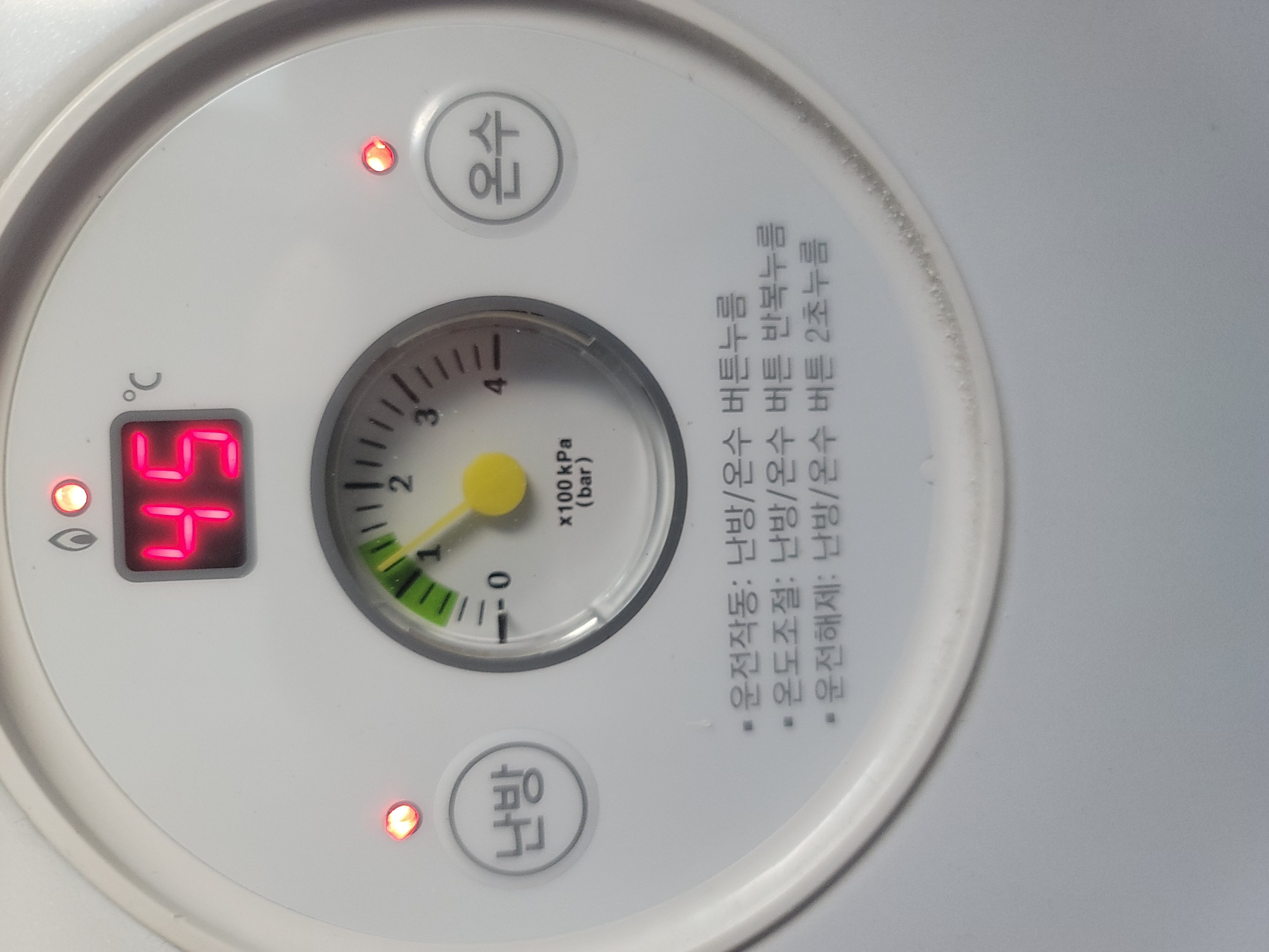 그리고 사진과 같이 압력게이지가 정상 범주 맥스에서 왔다갔다했었다면 조금더 초록색안으로 들어왔습니다.