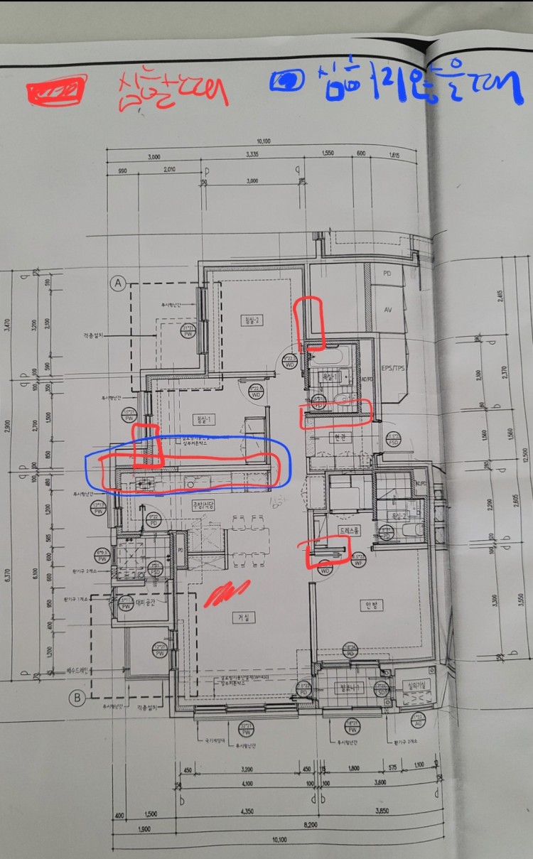 소리가 나는곳 교집합이라 어떤 배관인지 궁금합니다. 천장에 있는지 바닥에 있는지 그리고 이쪽 부분 인테리어 기사님 불러서 뜯어내서 볼 수 있는곳인가요?