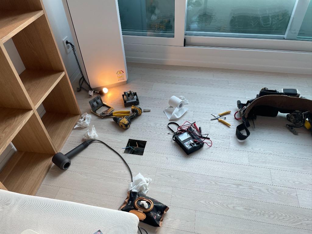 그리고 2월 둘째 주 쯤 차단기가 내려 가서 확인 하니 확장된 부분 바닥에 만들어 둔 콘센트에 문제가 있었습니다.