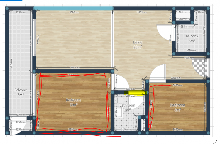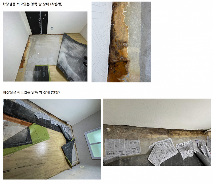 위 도면 사진에서 노란색부분은 화장실 문틀에서 누수가 발생한곳이고