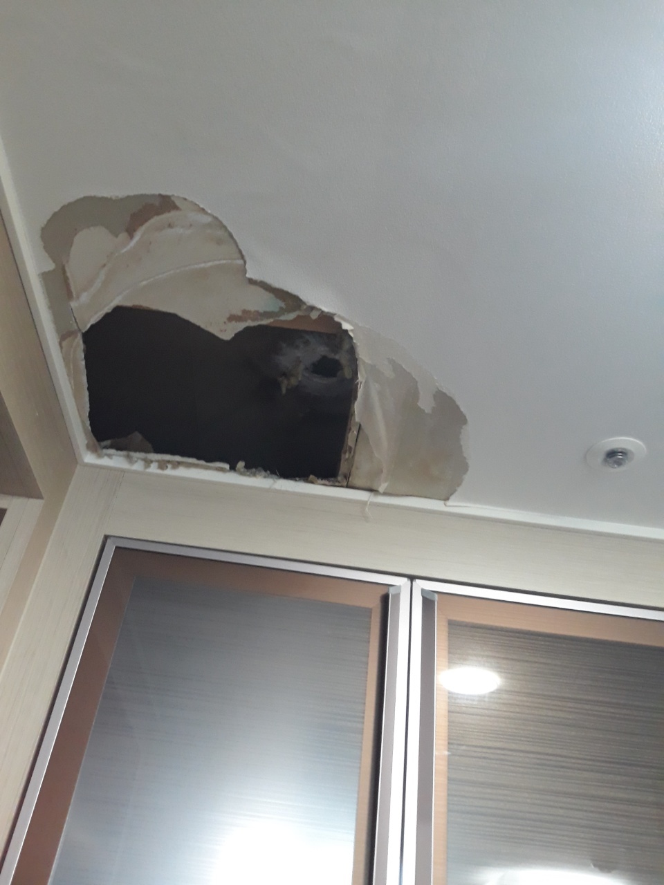 21년 11월 15일 이사를 온후에 안방 화장실 샤워 부스등 사용후에 22년 1월 15일 아래층에서 사진과 같이 물이 떨어진다는 연락을 받았습니다.