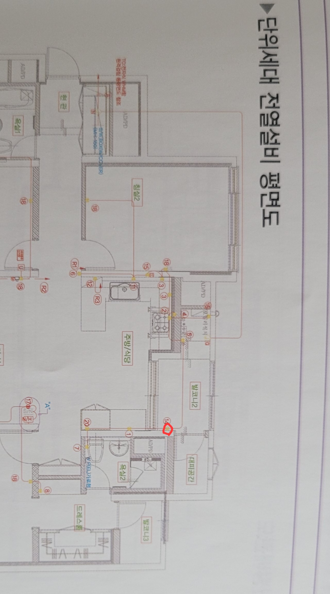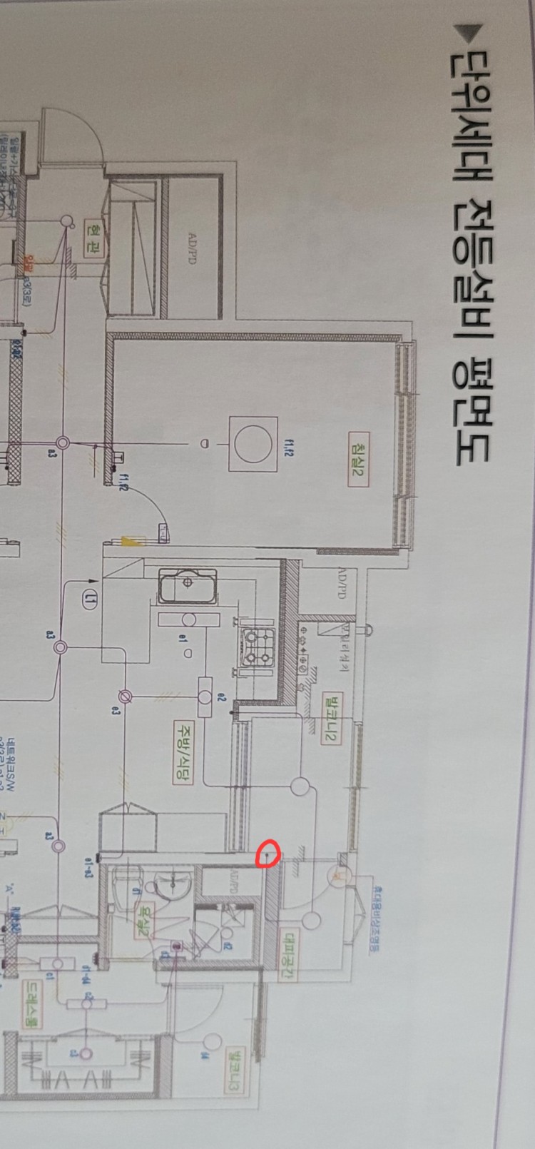 그럼에도 불구하고 결로가 맞아 보입니다. 더 자세한 것은 전열설비평면도를 올려 주시어요.