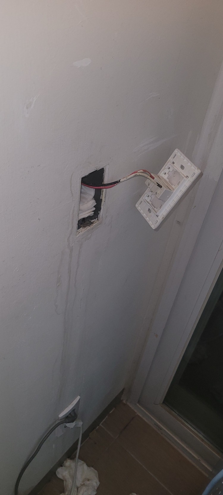 주방 베란다쪽에서 대피공간쪽 전등 스위치의 스위치박스에서 물이 새고 있습니다.