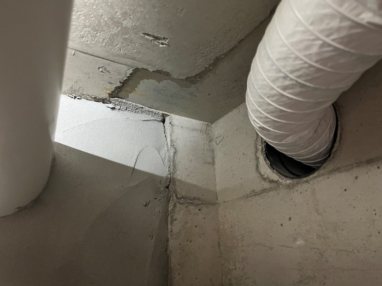 문의 2. 공용비트는 안방/공용 화장실쪽에 2군대로 보이며, 도면을 참조하여 화장실 점검구 위쪽을 통해 확인해보니 공용비트쪽 벽면체쪽 미장은 되어있지만, 상부 콘크리트쪽 접합면쪽에 중간 중간 부셔져있는 것처럼 빈공간이 보이는 것 같고 코너부 같은 곳에는 미장이 끝까지 안메꿔져 공간이 좀 있어 보이는 듯해 보입니다. 전반적으로 보시기에도 미장 상태 불량으로 보이시는지요??