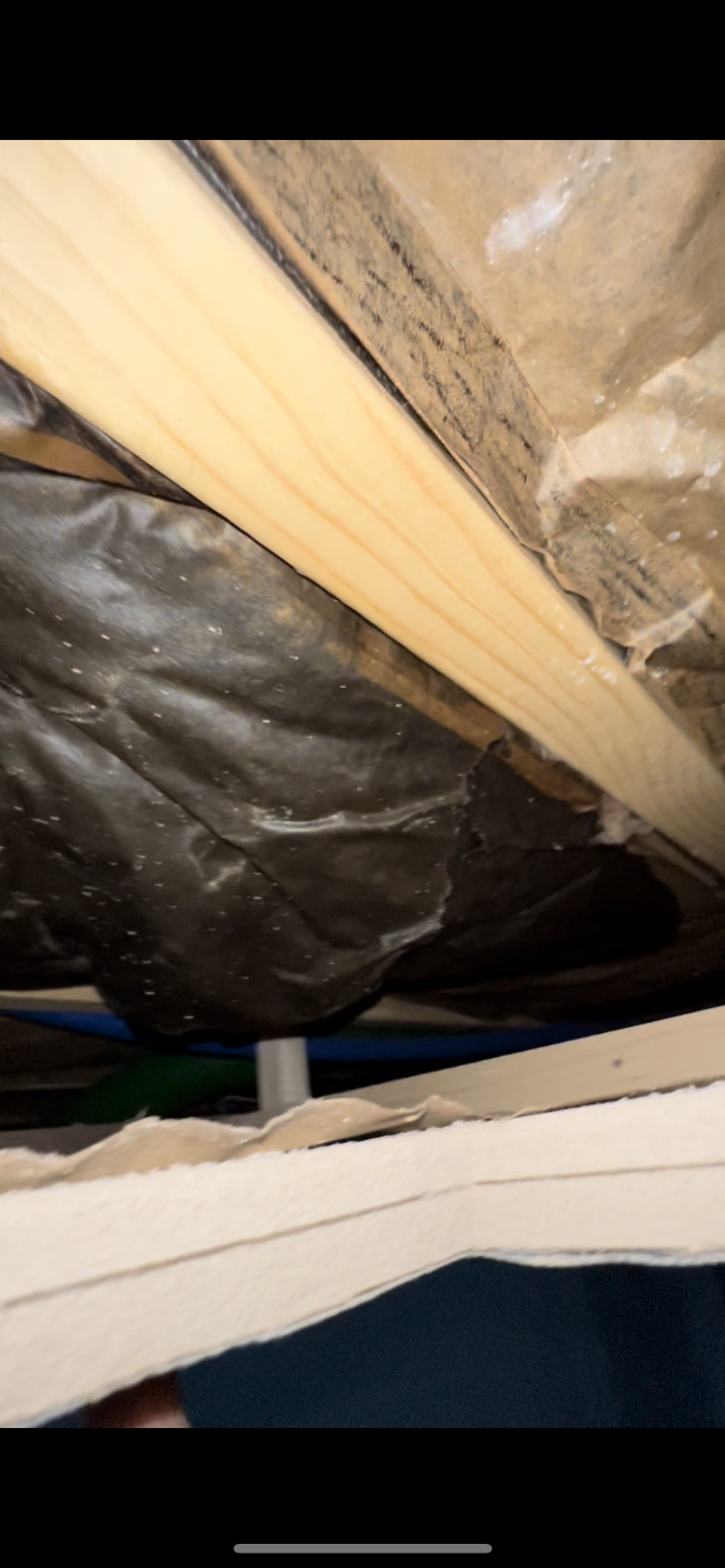 방통하지 않은 다락 바닥 osb합판으로 비가 흡수되어