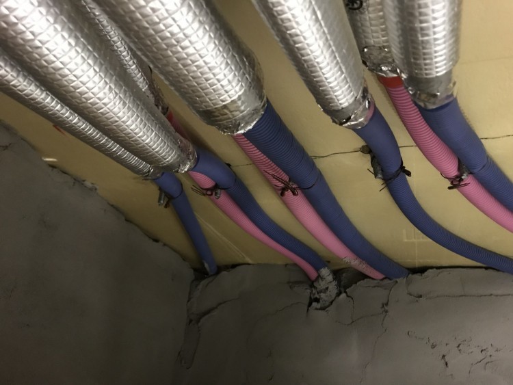 아파트는 해당부위인 욕실 천정 속 시멘트벽돌 벽은 상부까지 틈없이 미장하여 소음과 냄새를 차단함을 원칙으로 하고 있습니다.
