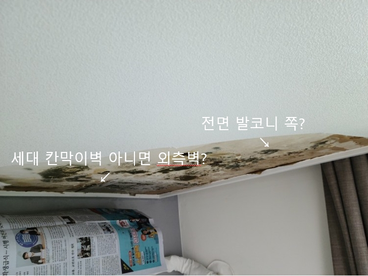 현재 사진으로 봐서 누수흔적이 없고, 위에서 말씀드림과 같이 해당 부위가 단열 취약 부위이기 때문입니다. 즉, 현상의 곰팡이 발생은 누수가 아닌 동절기 결로에 의한 것으로 추정된다는 뜻입니다.