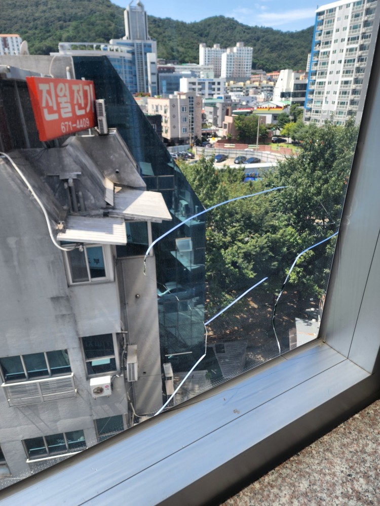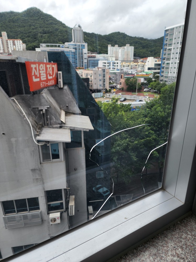 우연히 유리창에 금이 가있는것을 확인 하였습니다.