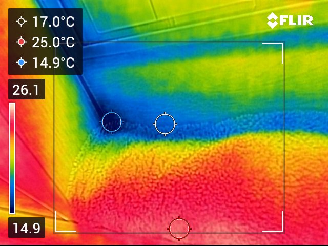 문제의 모서리 스팟의 온도가 18도고 주변부 온도를 같이 끌어내리는걸 감안하면