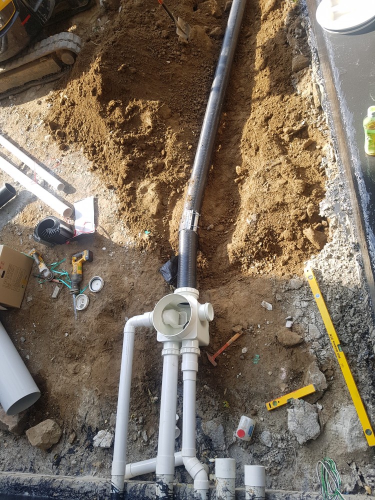 첨부된 사진과 같이 1층에서 마당으로 빠져나가는 오수,하수 배관이 맞는지 확인 해주세요.