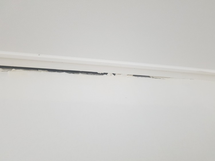 이번에 안방 벽지를 다시 할려고 벽지를 뜯었는데, 안방(콘크리트벽) 과 천정 몰딩 사이가 손가락 한개가 들어 갈 정도로 유격이 있습니다.