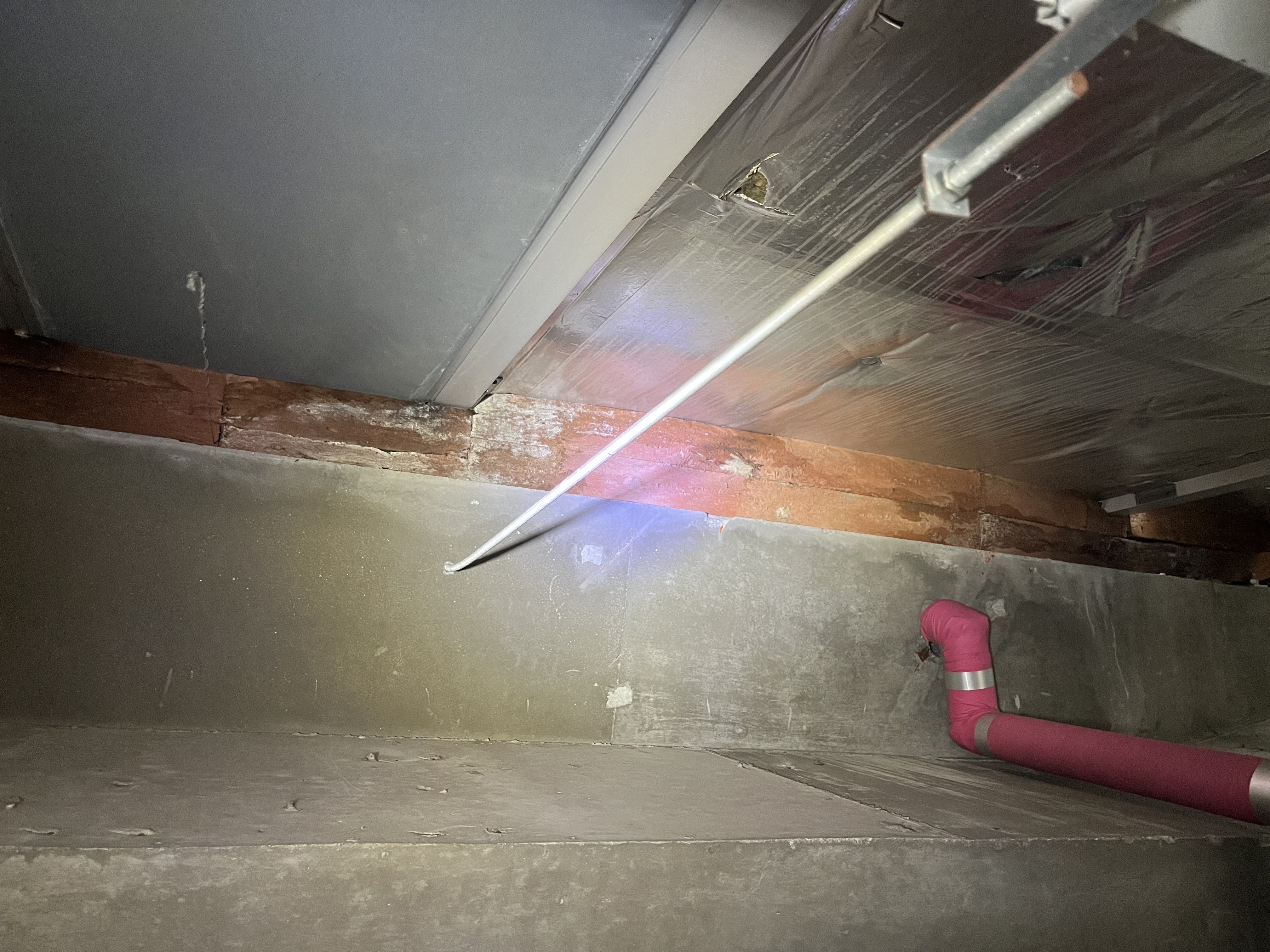 어제 물 고여있던 위치에 휴지 올려놨는데 오늘은 멀쩡한거보니까 비가 많이 오면 새는거같습니다..