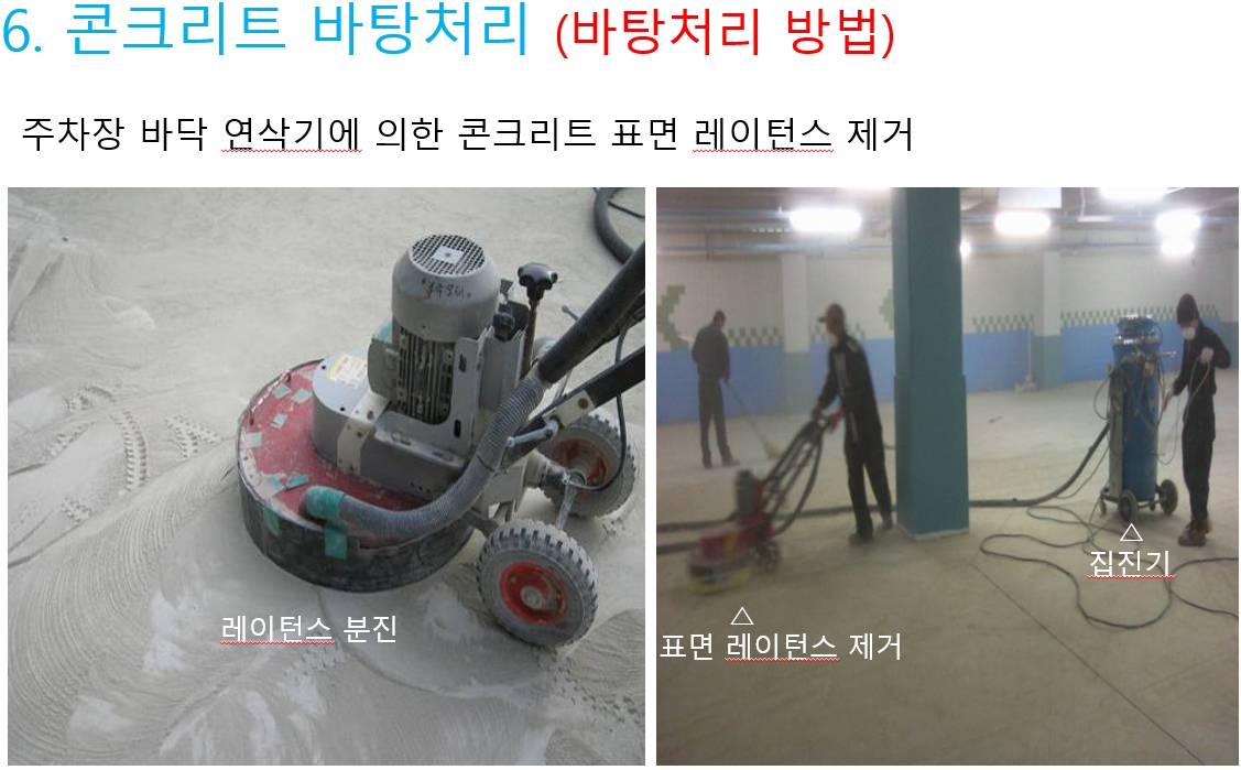 주차장 바닥 콘크리트 위에 표면 강화제를 도포하는 것은 일종의 '도장 공사'인데, 여기서 중요한 것은 바탕인 콘크리트와 에폭시 등 도장재와 계면 접착력이며 이를 좌우하는 게 콘크리트 표면 강도입니다.