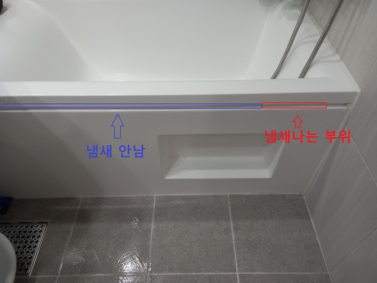1. 관리자님 의견대로 냄새발원지는 욕조배수구일 확률이 높습니다.