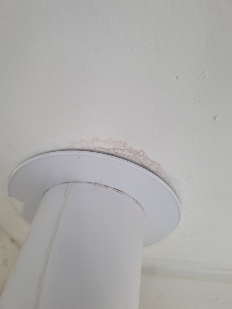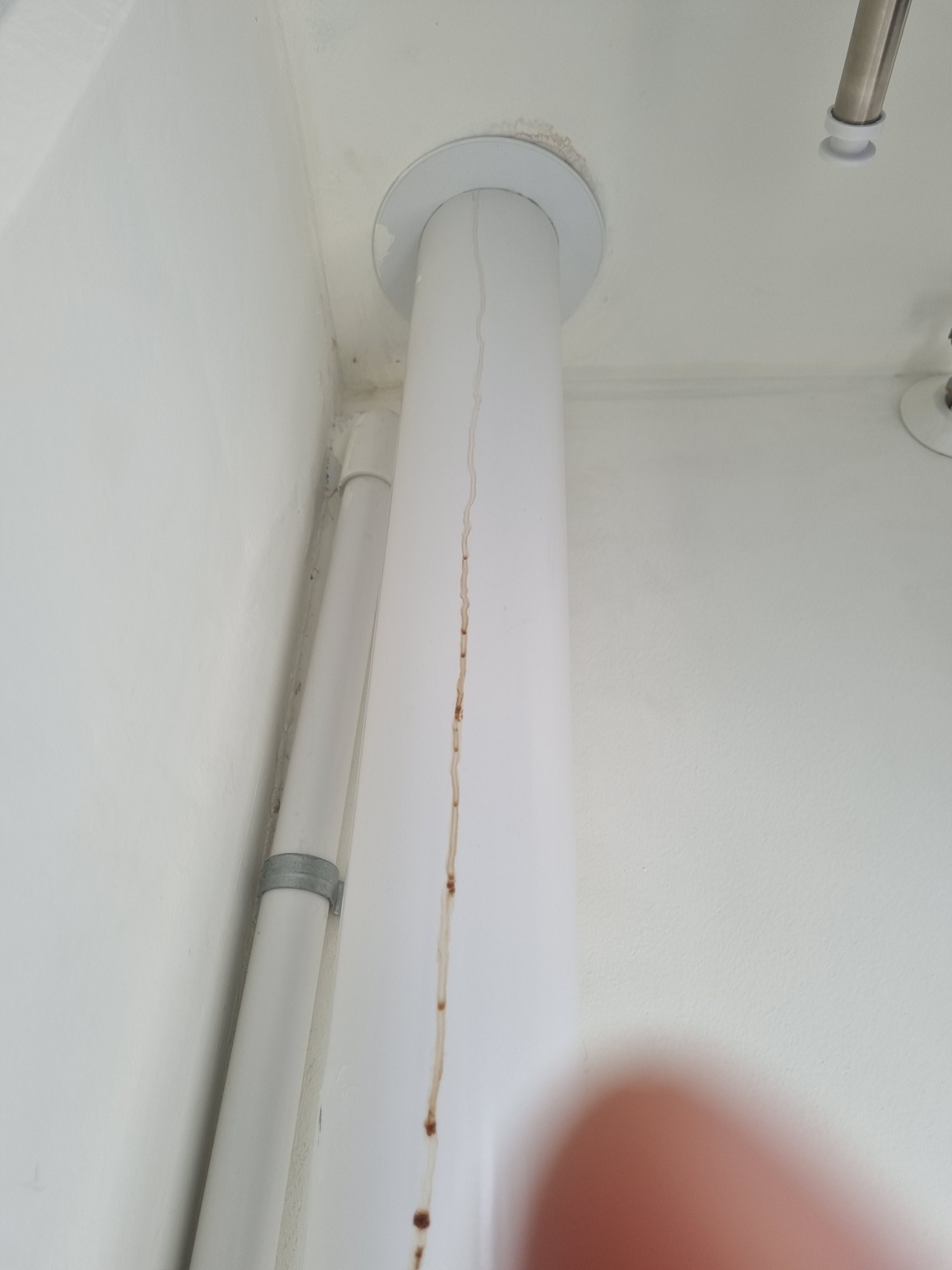 안방 베란다 우수관을 보니 갈색뭔가 흐른 자국이 있고 위를 보니 약간 누수의 흔적 같은 것이 보여서