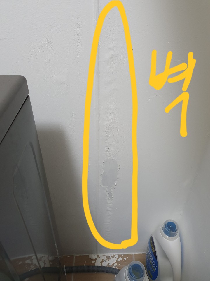 얼마전(2019. 9.3) 다용도실 확인중 천정과 벽체 페인트 들뜸 현상을 발견했습니다.