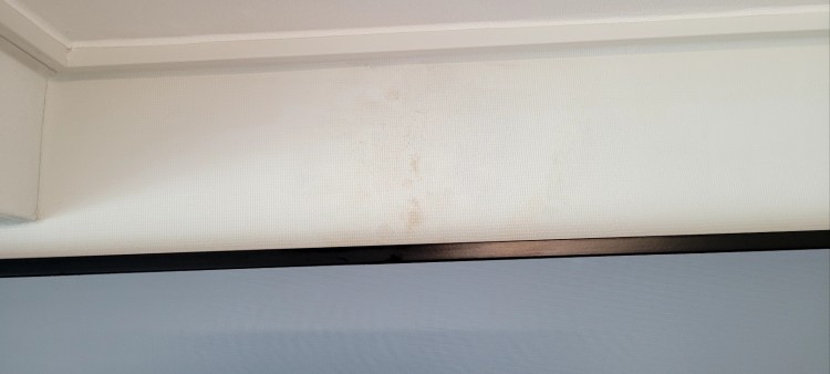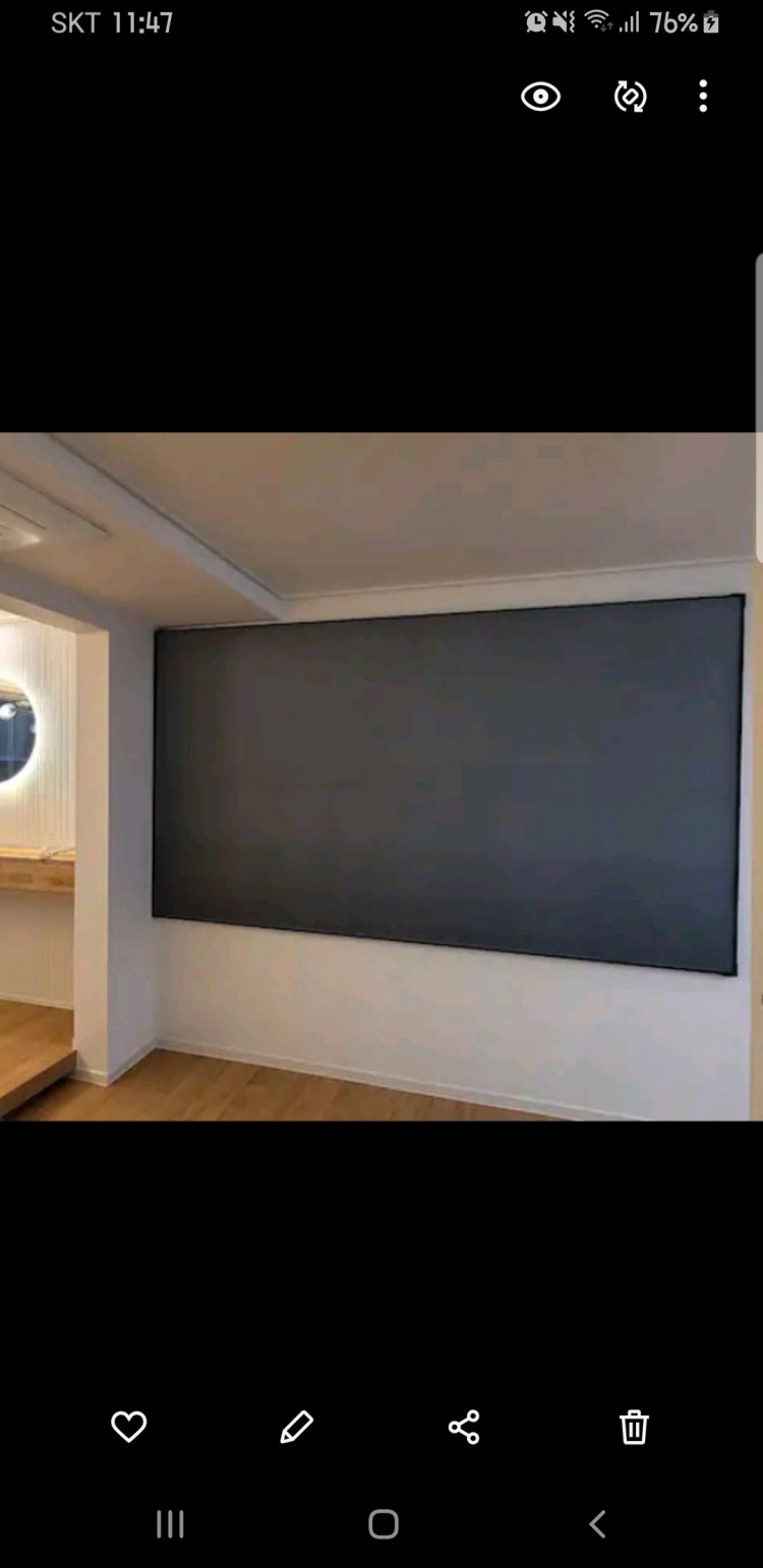 거주를 계속적으로 하는 집이 아니라서, 지난주에 가보니 빔프로젝트 화면 위쪽 벽면에 약간 베이지색으로 벽지가 색이 바래져 있었어요. 빔프 화면은 임의적으로 저희가 떼 볼수가 없어서 화면 뒤쯕은 어떤지 알수가 없는 상태입니다.