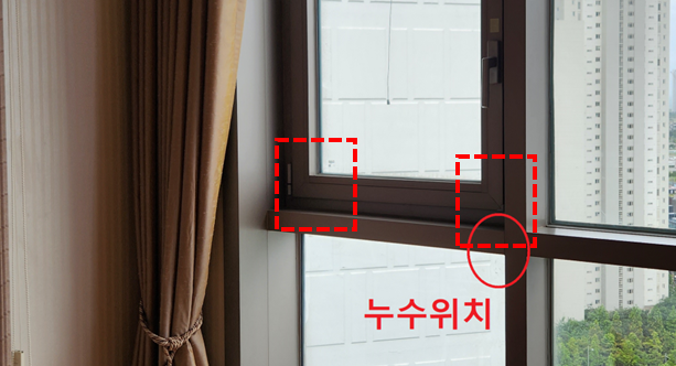 아파트 시스템창호(TT type) 아래 부분 창틀 프레임에서 누수가 발생하여 문의드립니다.