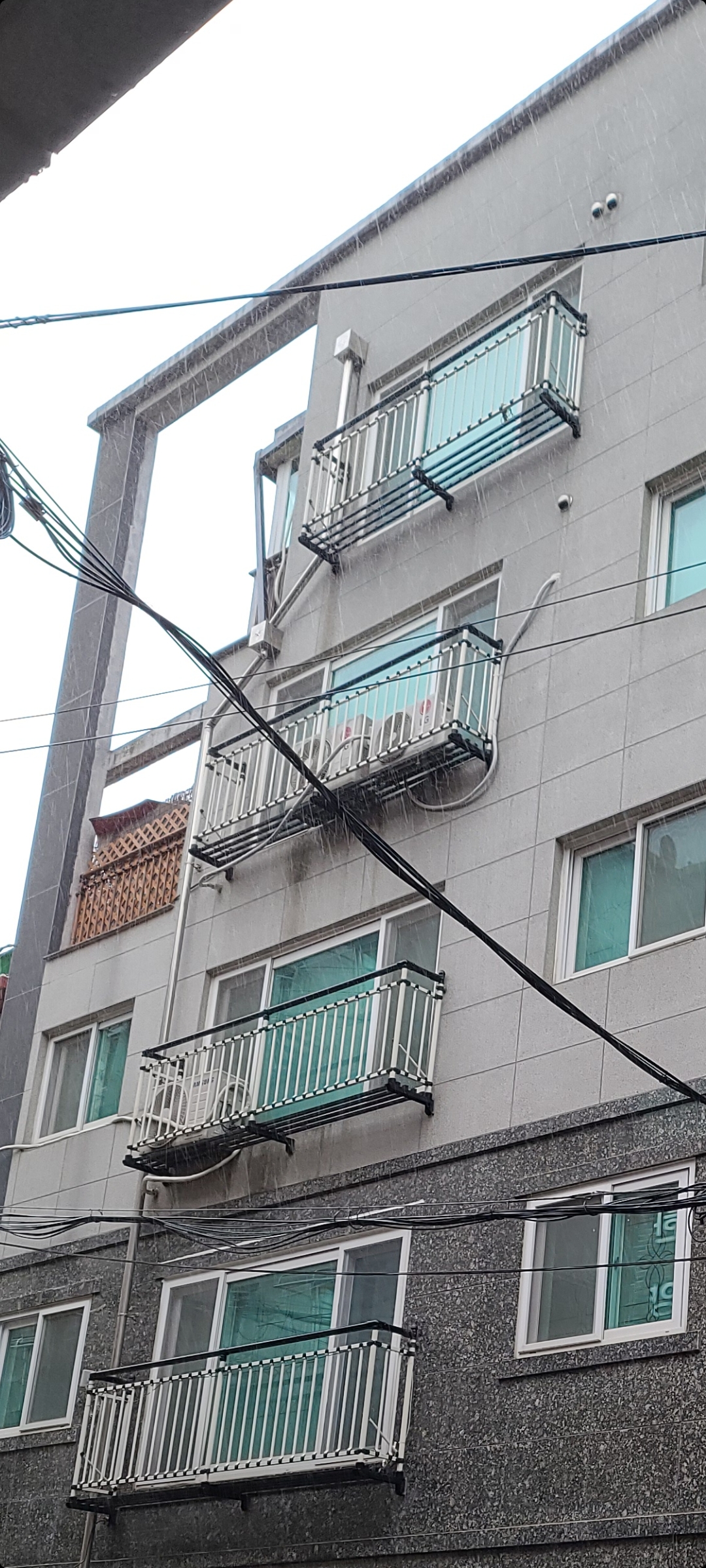 (아래 3개사진은 3층난간발견시, 실리콘하고 장마지난뒤, 3층에서찍은 하단벽면 입니다)