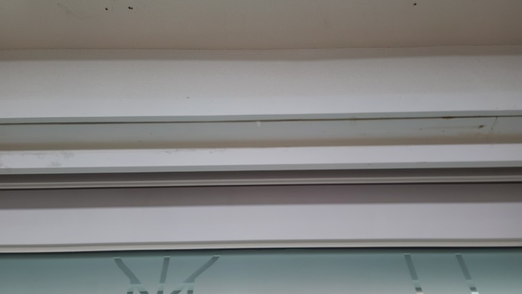 현재 비가 떨어졌던 샤시 상단 벌어짐이있고 석고보드곰팡이