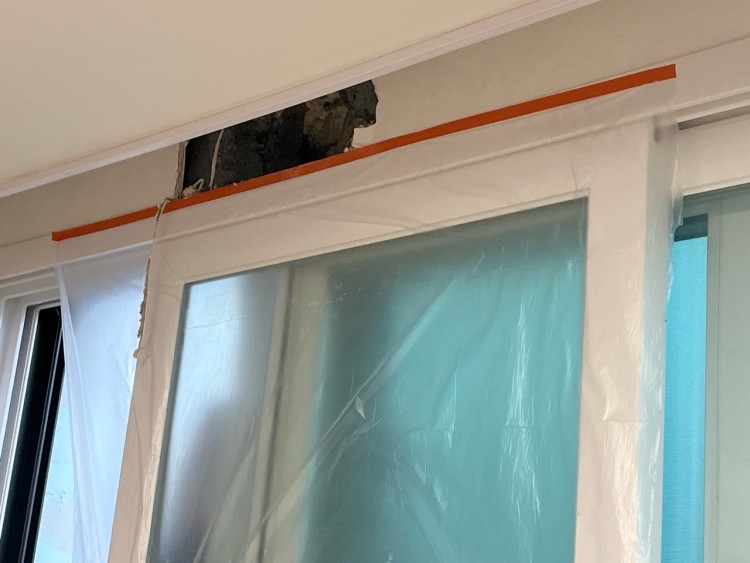 누수 경로를 찾기 위해 안에 내장제를 뜯었는데요. 내장제에서 전혀 젖어있는 흔적을 찾을 수가 없었습니다. 외부 크랙 흔적은 없고, 최근에 외벽 크랙 보수 작업까지했거든요. 탑층이라서 옥상 크랙 보수 작업도 했습니다.