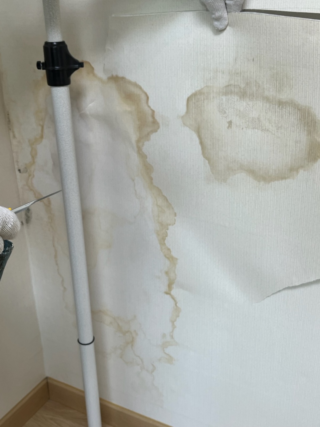지난번 답변주신대로 누수업체와 함께 벽지를 뜯어 보았습니다 배관누수는 아니라고 하고 화장실 방수가 안돼서