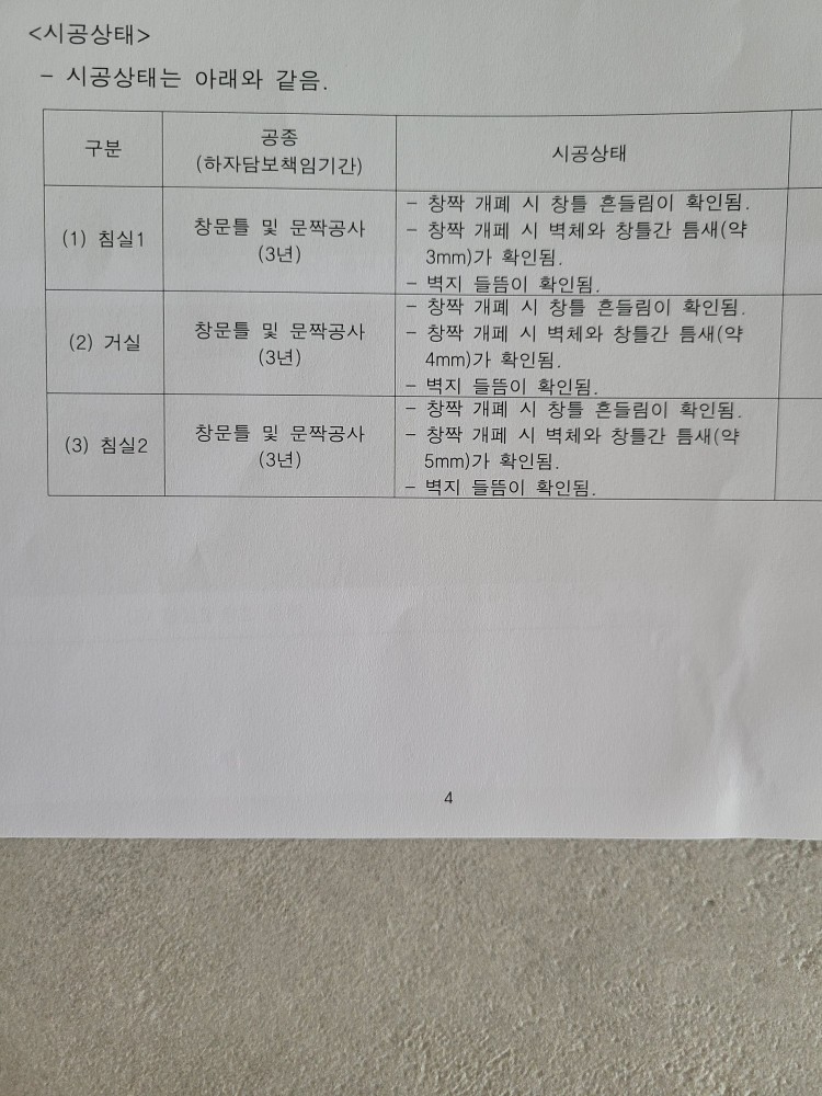 당연히 하자가 아니라고 판정이 나올 줄 알았는데 하자라 판정이 나서 당황스러우며 저 부속품때문에 그런거지 하자는 아니다. 하자가 아니지만 판정은 났고, 추천하진않지만 세대주가 원한다면 폼을 쏘는 형태로 as를 해주겠다. 라고 말을 했습니다.