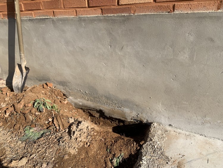 지면 위로 보이는 부분만 미장이 되어 있고 벽돌을 떠 받치는 역할을 겸하고 있는 것 같습니다.