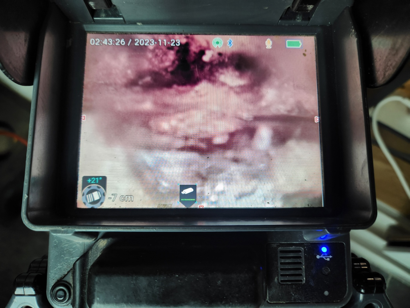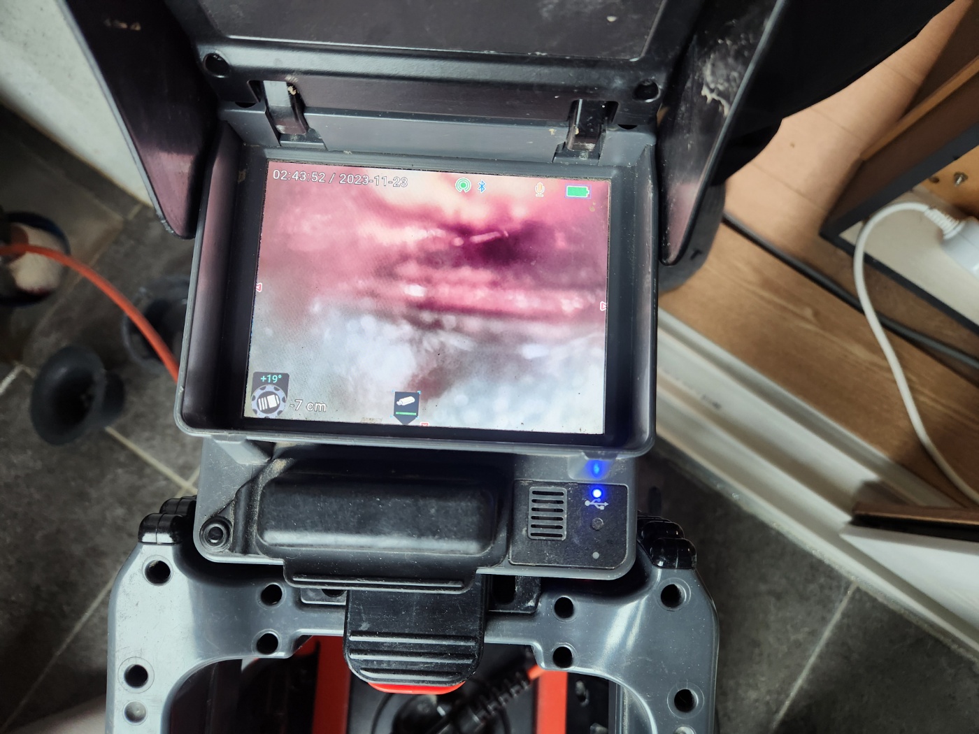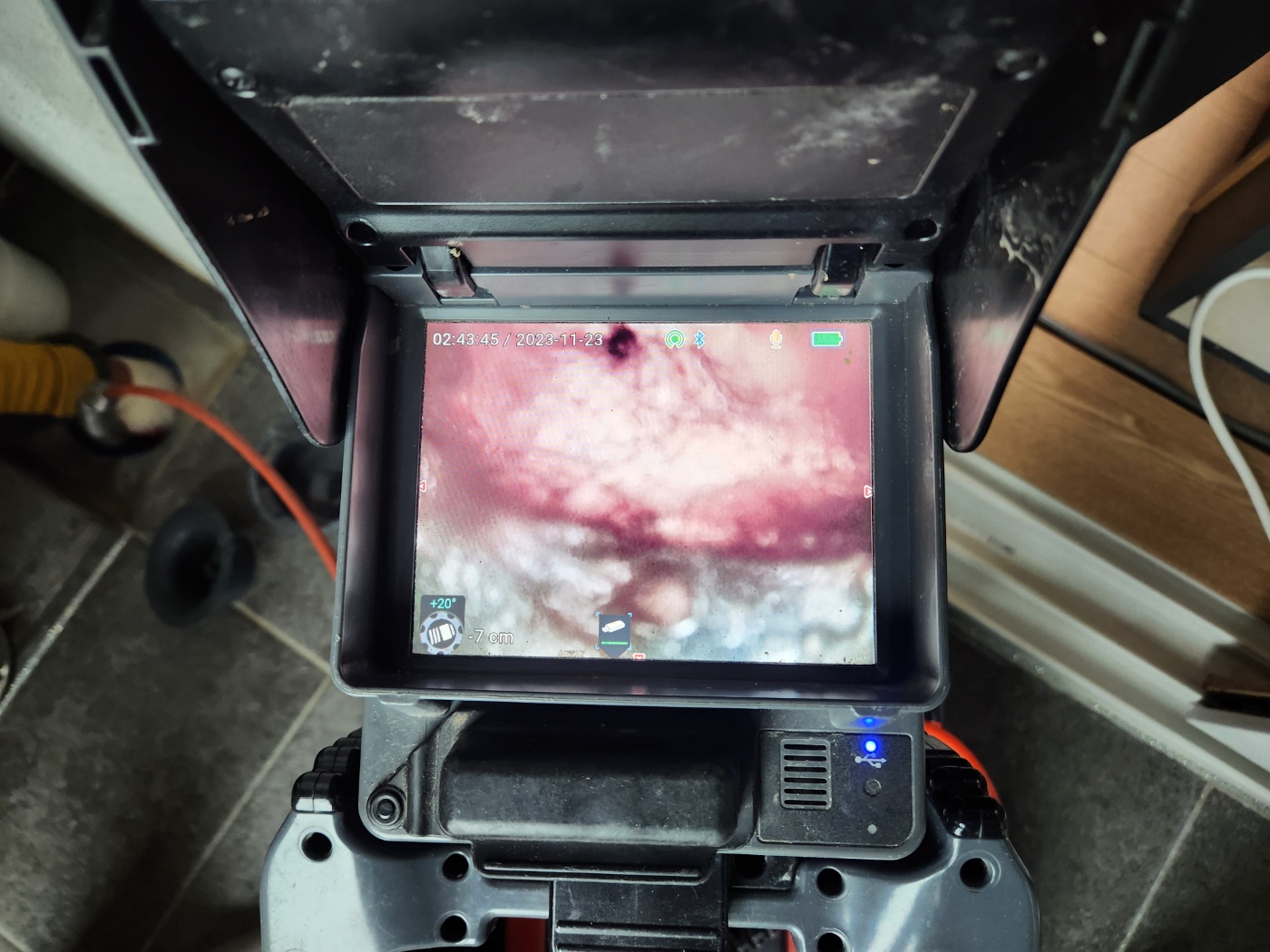 안방 베란다 세탁기 하수관: 내시경 검사 결과 배관속 슬리브층에서 방수층이 깨어져 있었슴 차후 수리요망