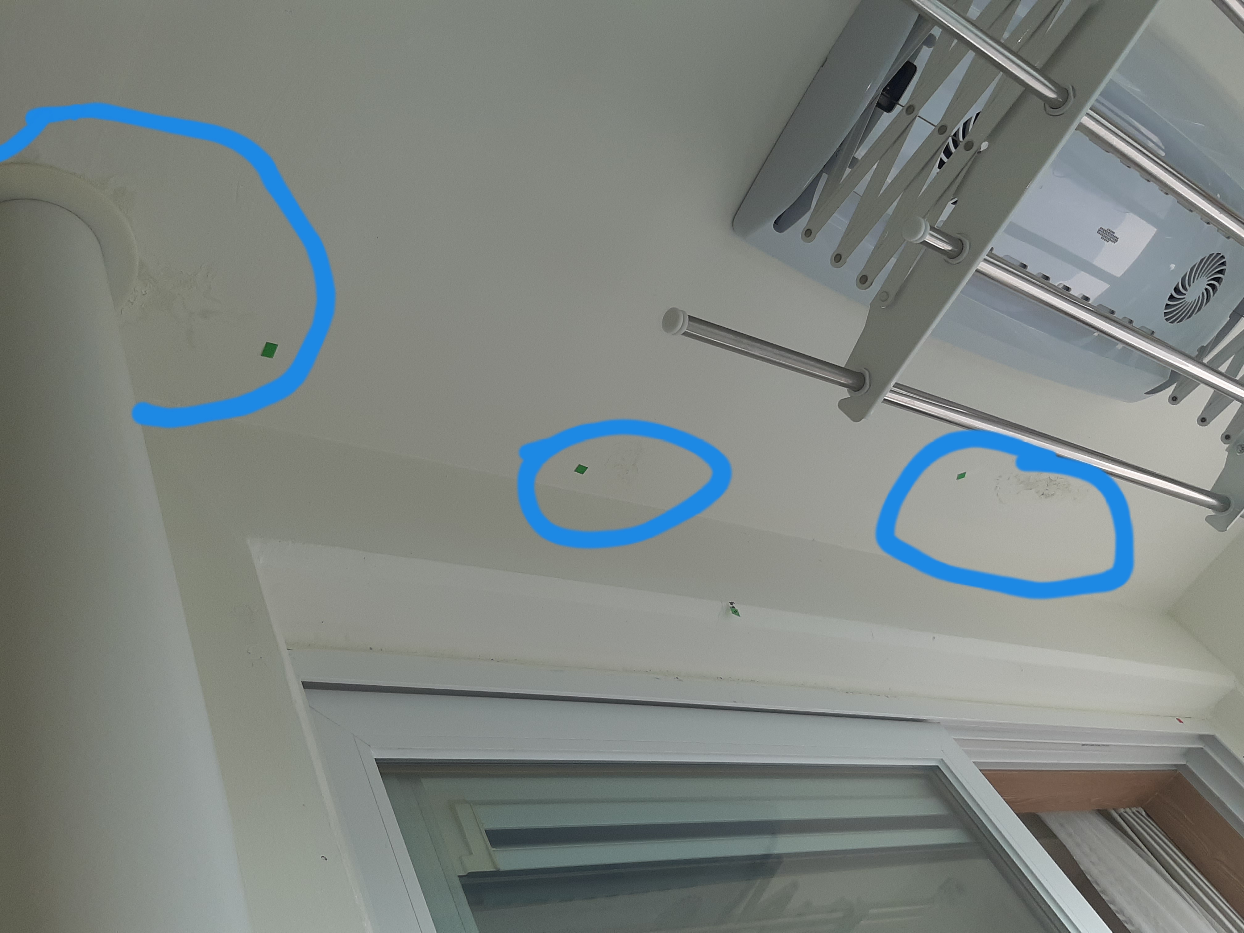 하자소송전 기존 안방발코니 천장누수와 세탁배괸 누수 봐주세요. 발코니누수가 공용부인지? 아니면 이부분도 윗집인건지요?