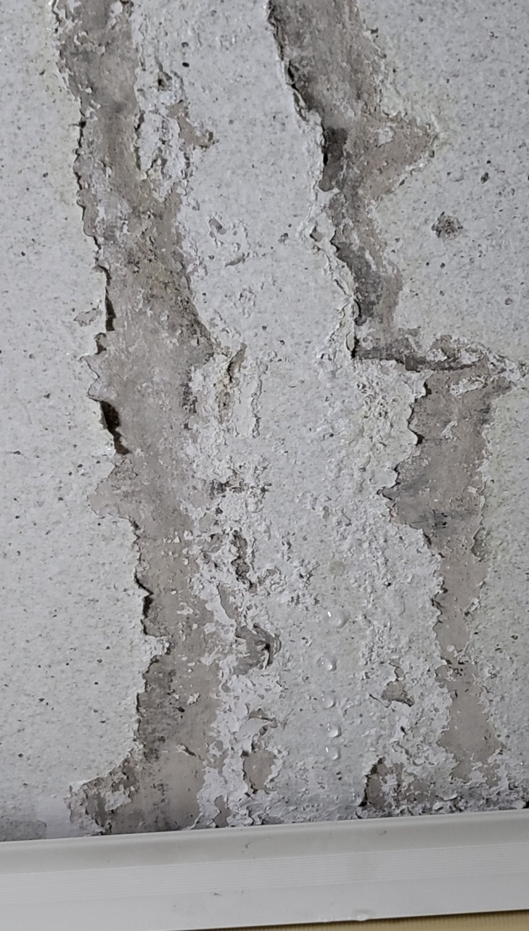 얼마전에 도색전 전처리하고 색칠다 했는데 그전에 저부분이 금이가고 많이  부서져있었거든요.근데 저부분 도색한지 얼마 안됐는데 누수로 페인트가 지워졌어요.저부분 바로 옆이 저희집 베란다 천장 누수자리거든요