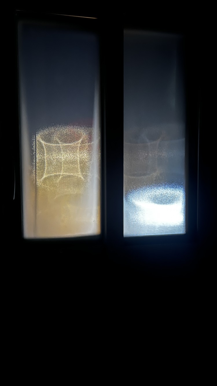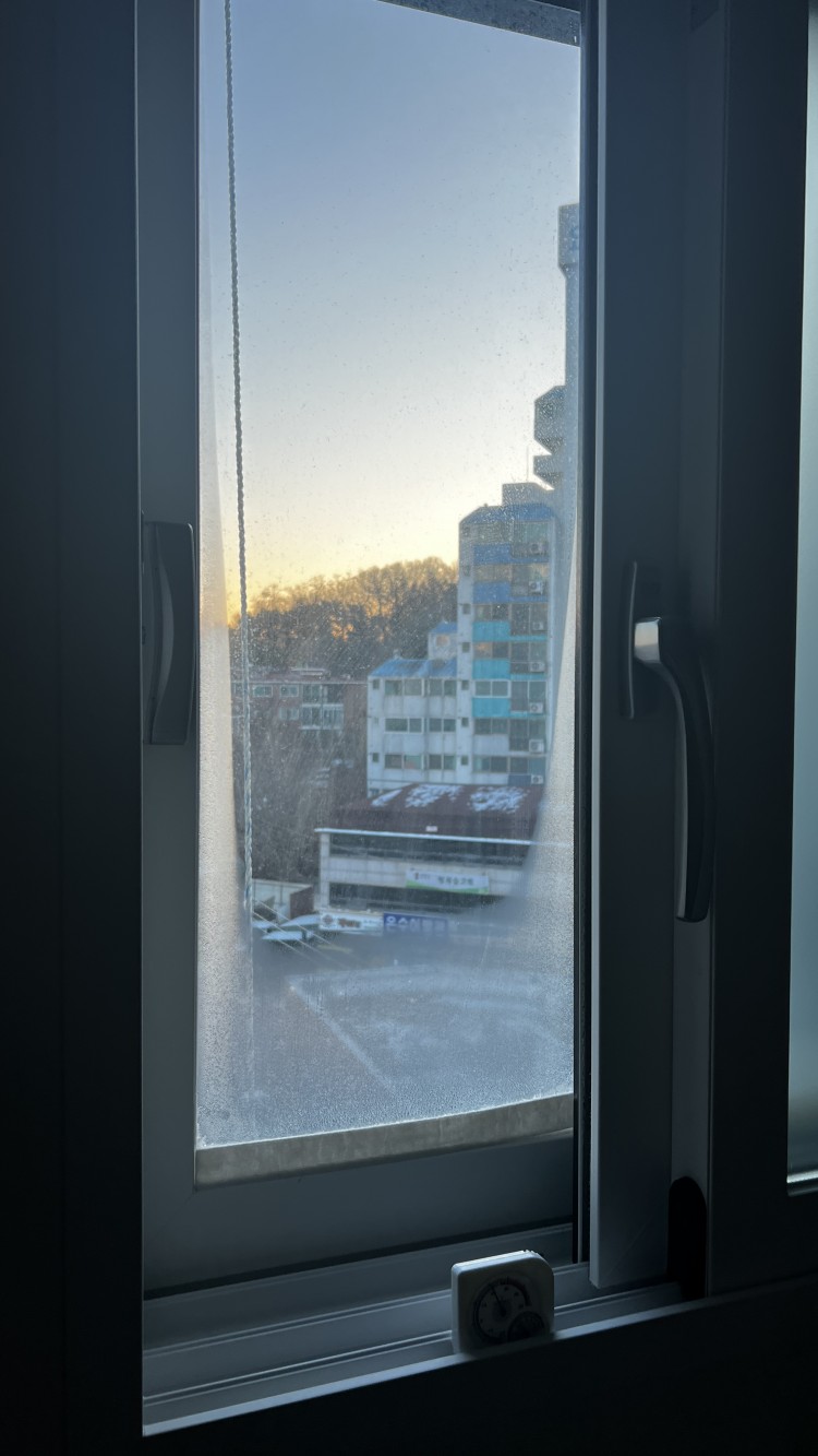 외부창에서 보이며 두짝 중 왼쪽이 심하고 하단 샷시부에도 생깁니다. 그리고 요즘은 결로가 얼어버리고 있습니다.