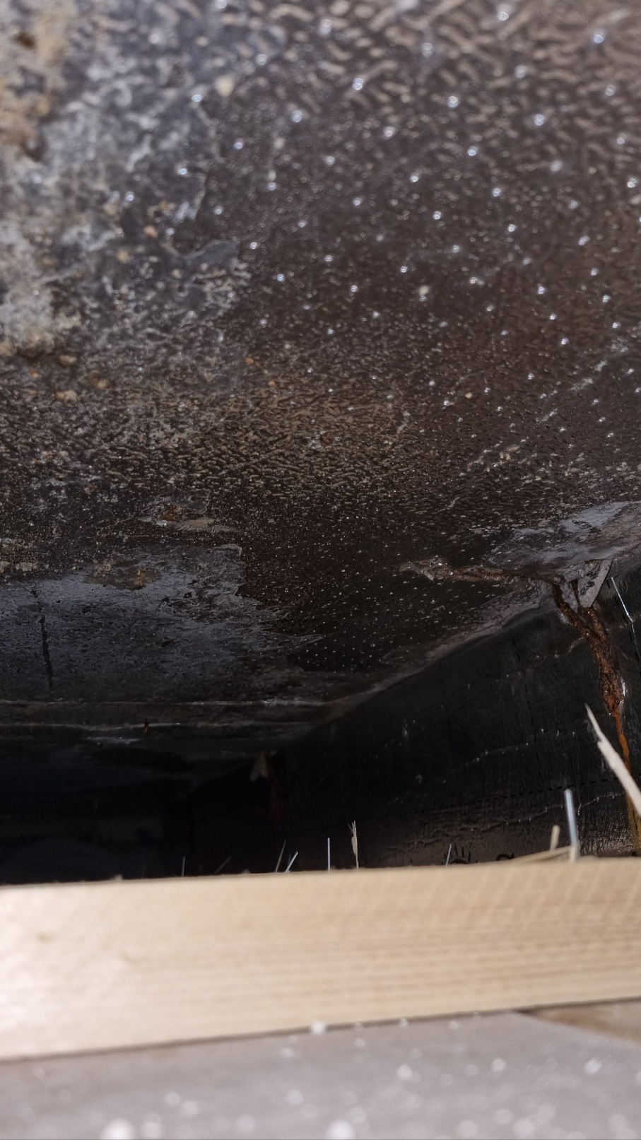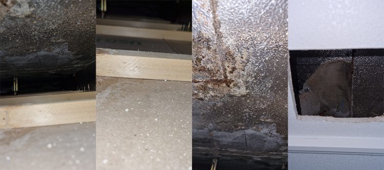 환풍구를 열어서 확인해보니, 단열재 이음새 부분에 물이 흘렀던 자국이 있으며