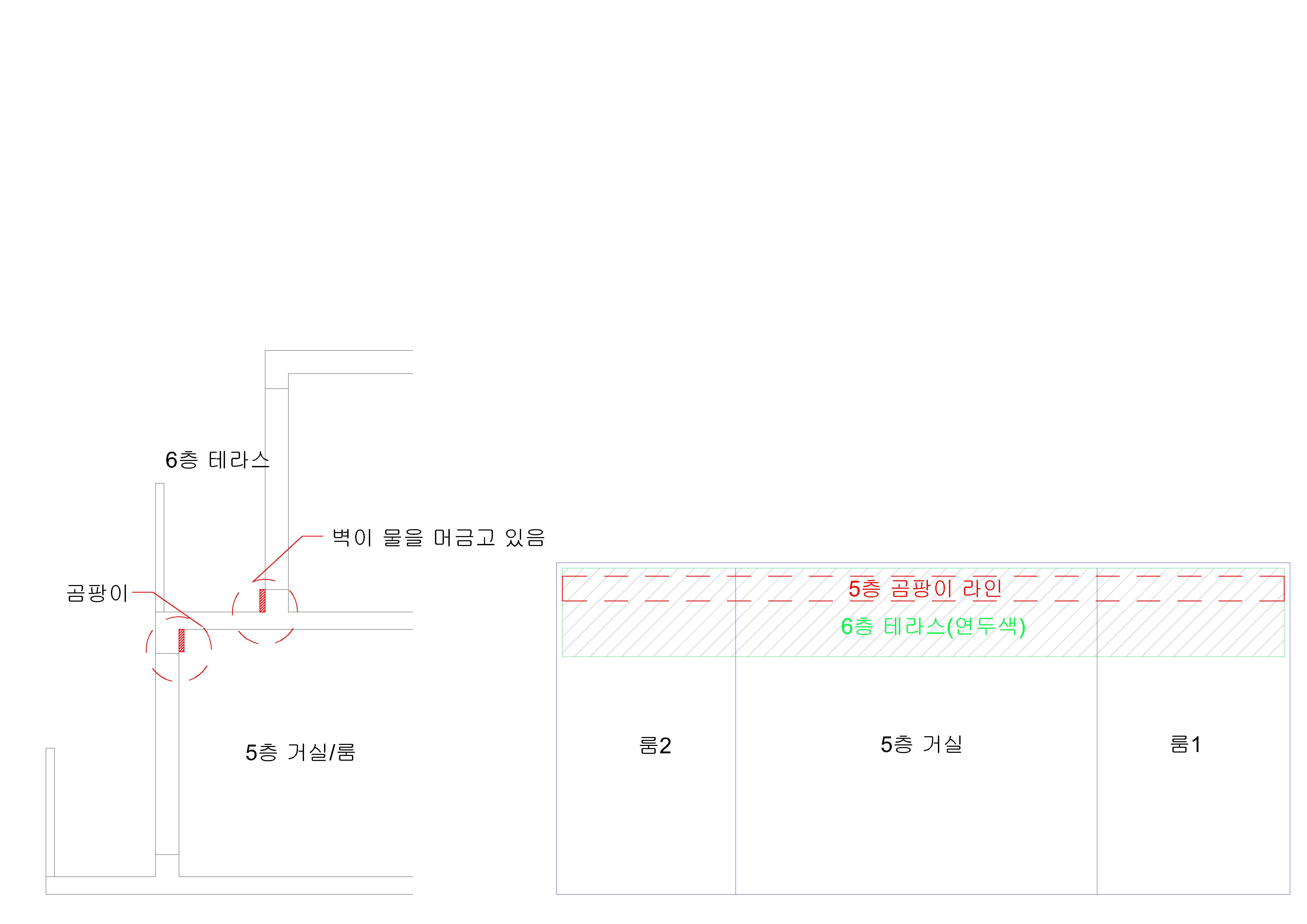 테라스 방수층에 문제가 있거나, 6층의 결로가 5층까지 새어나온것이 아닌가라는 생각이 드는데