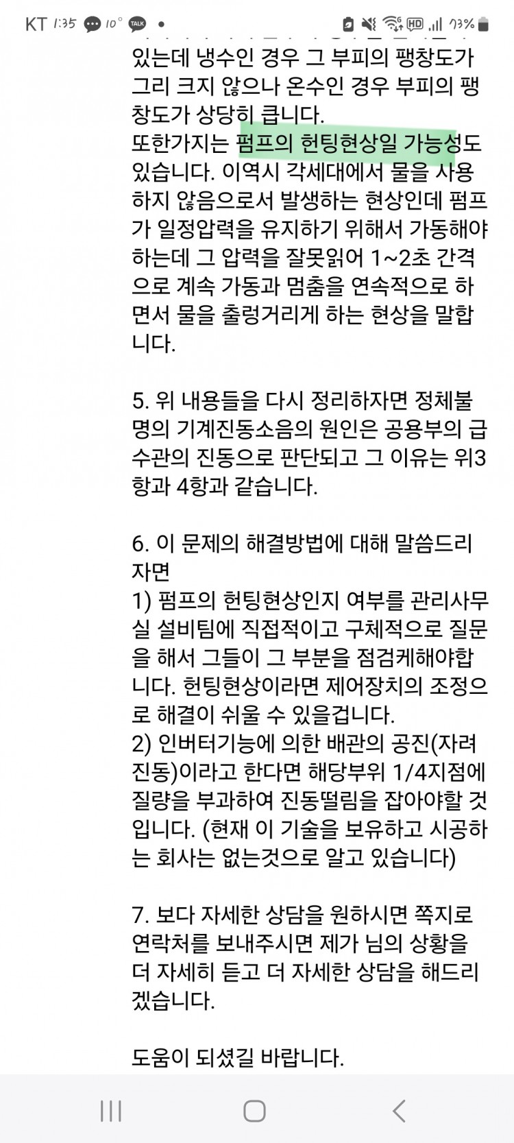 펌프 헌팅현상까지 알게 됐는데 혹시 가능성이 있을까요?