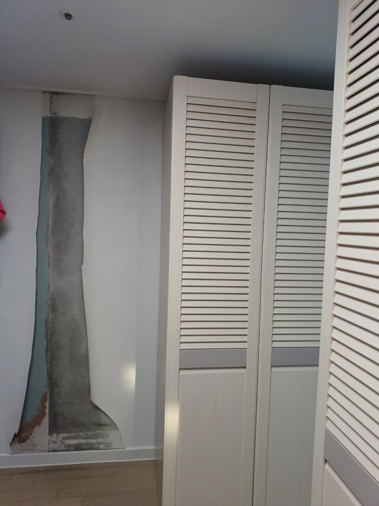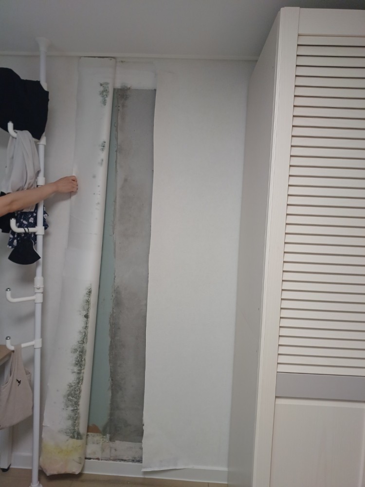 지난주 금요일 장롱 밑 물이 보여 분리해보니 벽과 바닥에 물이 흘러있고 곰팡이꽃으로 난리가 나있었어요