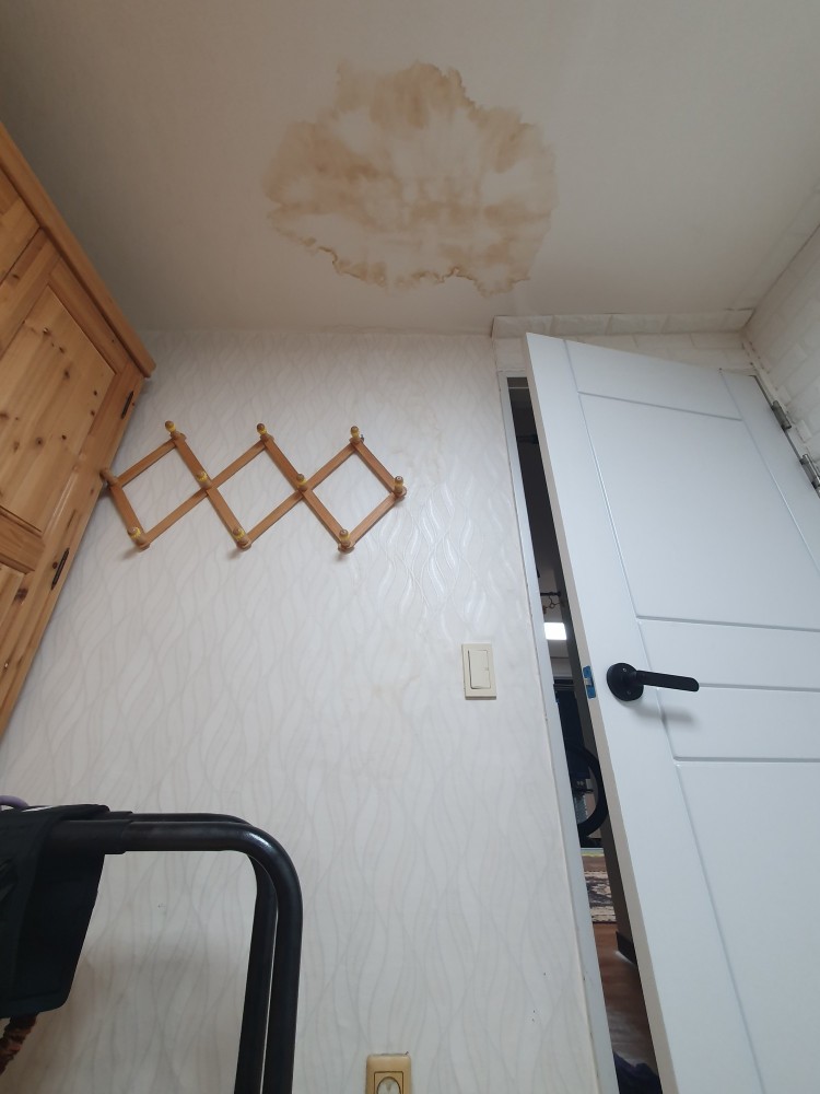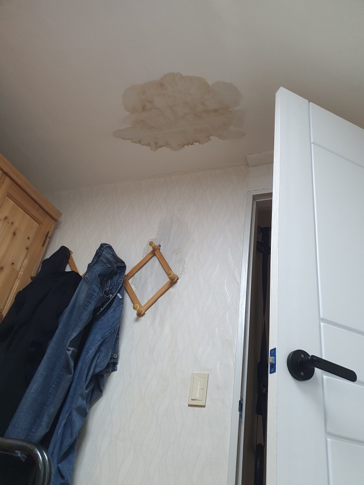 몇년 전까지 윗집누수로 아무 문제 없었는데 작년에 윗집 공사 하고 나서 이런일이 발생했습니다. 작은방 창문도 샷시코킹 제대로 안해서 거기로 다 스며들어서 저희집도 새서 피해도 봤었고요.
