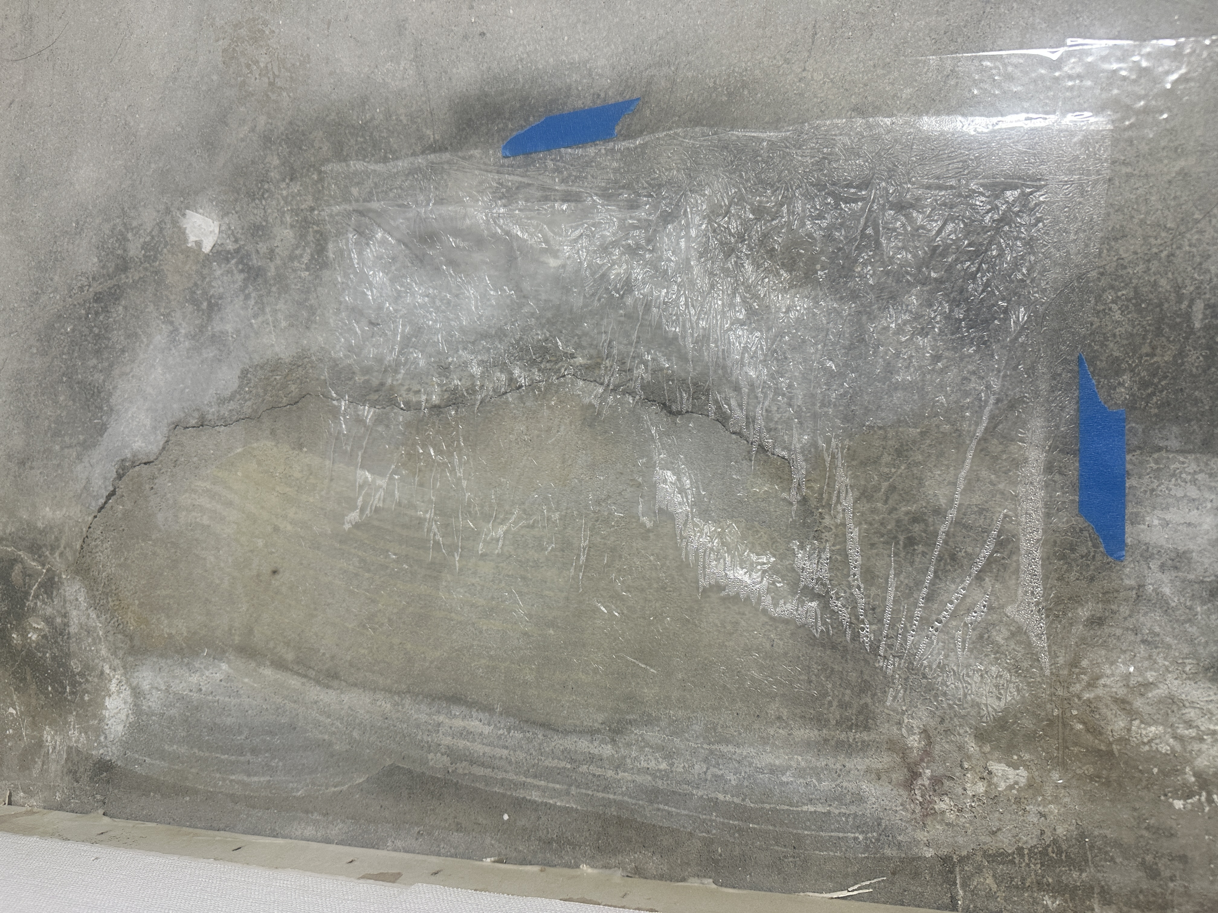 비닐을 걷으면 비닐 아래 바닥면은 말라있습니다.