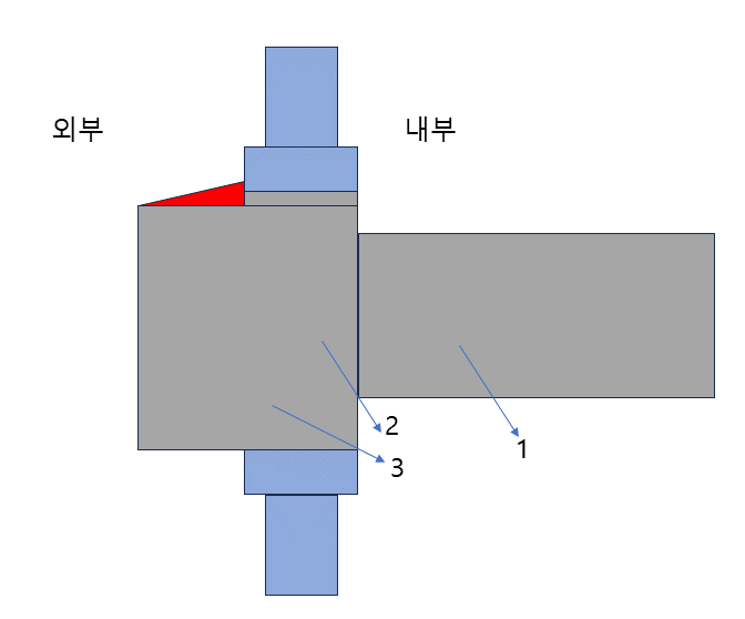 그리고 그림에서 붉은 색 부분이 경사진 곳인데요. 이 경사면이 중공 초기 부터 있었는지... 아니면 인테리어 혹은 창호 교체를 하면서 세대주가 별도로 한 것인지를 알아야 합니다.