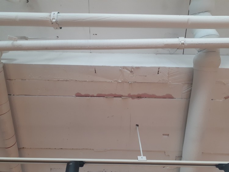 여기 사무실이 마지막끝층(바로 위는 옥상, 옥상에는 실외기들이 있습니다, 실외기 돌아갈때 진동 있습니다)이다보니 오픈천장해둔곳에서 페인트와 시멘트 덩어리가 떨어져 나왔는데 페인트업체를 불러서 다시 칠하려고하니