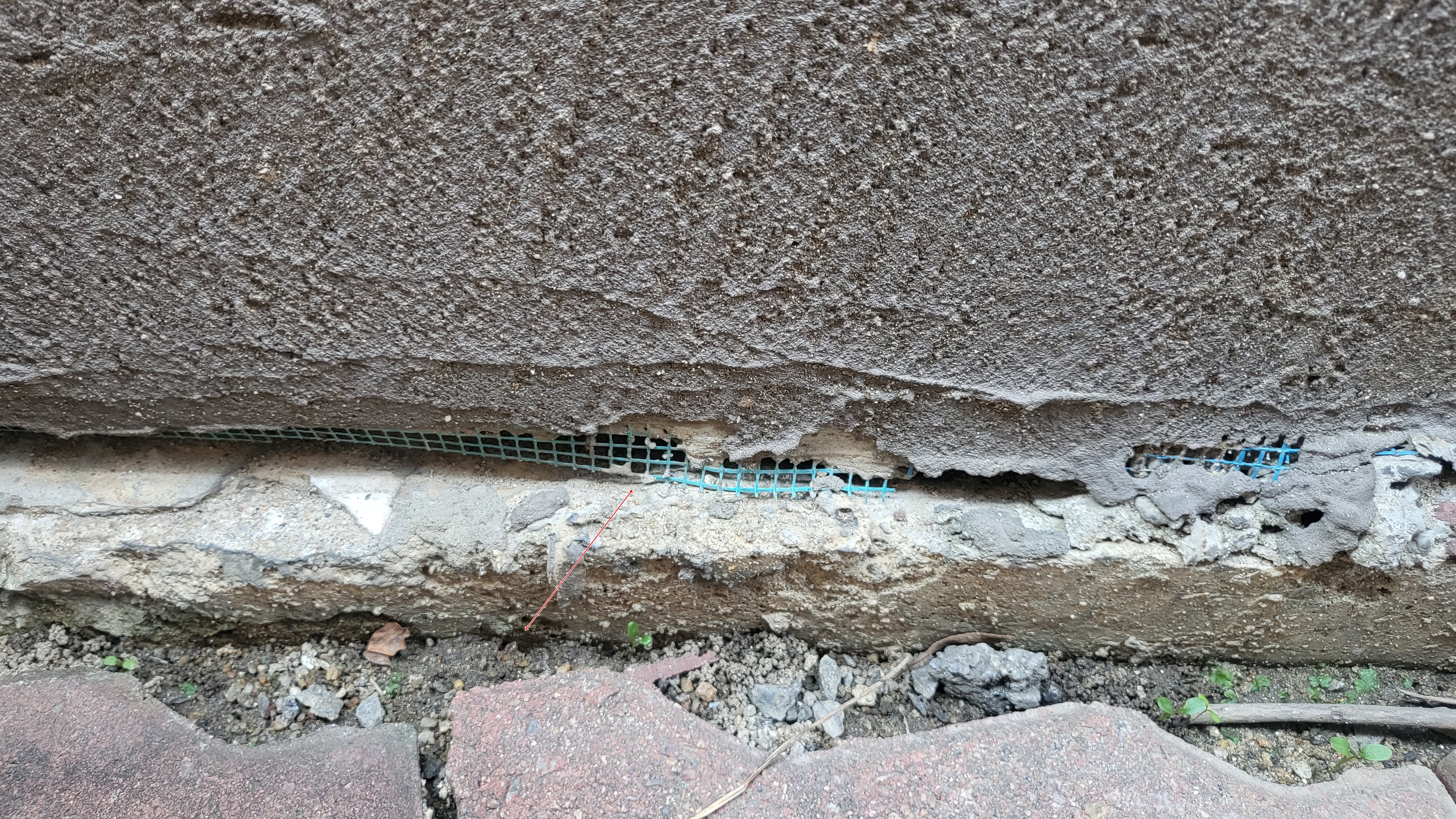 2. 외벽 최 하단부의 드라이비트가 깨져 속의 메쉬가 들어나 보입니다.
