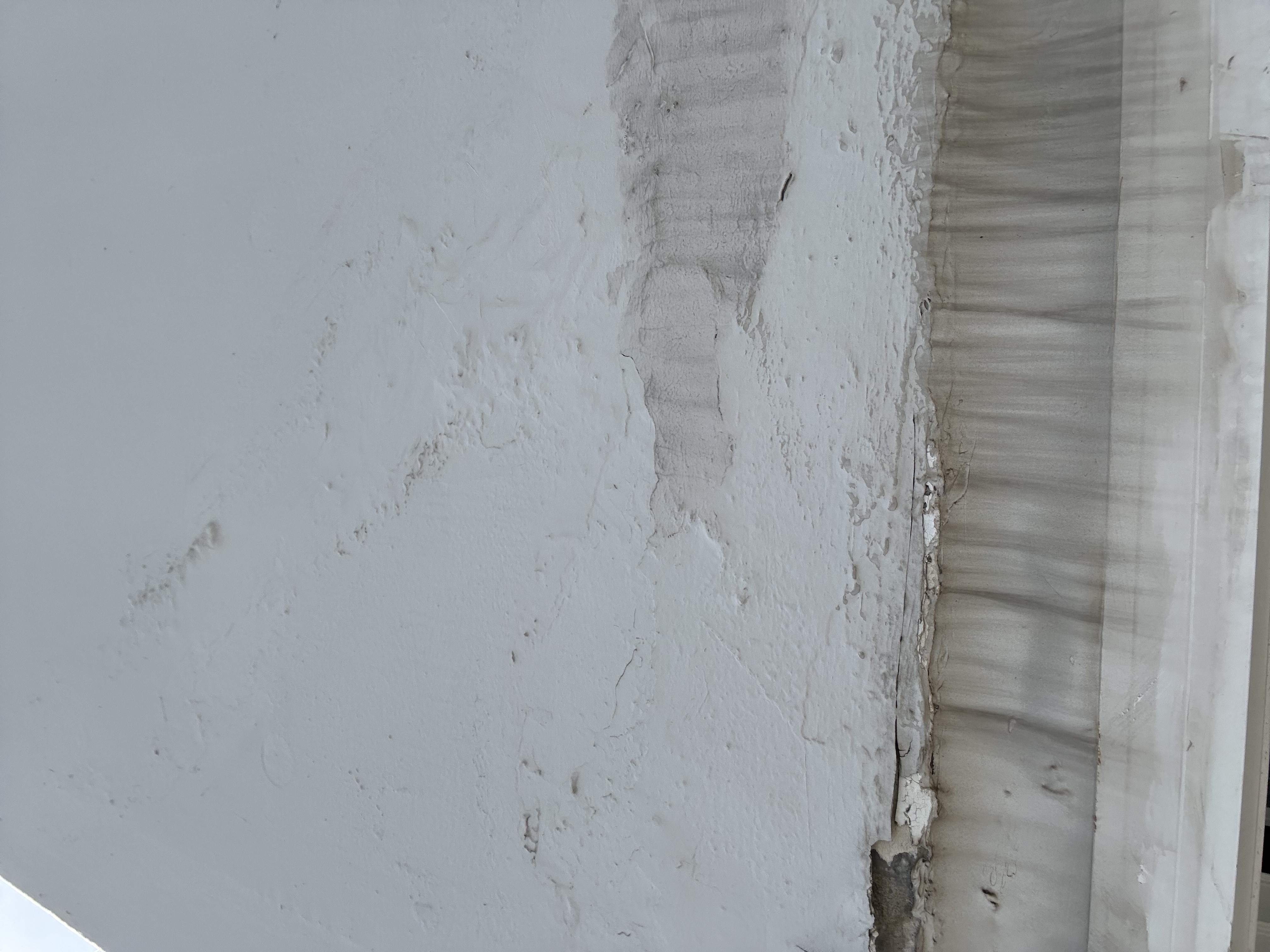 그리고 아래의 마지막 사진은 아랫집 크랙 바로 위, 윗집 상태입니다. 벽에 곰팡이가 있고, 사진상으로 잘 보이지 않지만 강화마루인데 바닥이 좀 우글했어요. 도배와 강화마루 새로한지 1년이 채 안됐다고 했습니다. 그 전에는 비가오면 물이 넘치고 튀어서 벽도 난리고 바닥도 난리었다고 포기한 방이었다고 했어요. 세입자도 몇번 두었던 집이라 집주인이 다시 들어오면서 도배와 강화마루를 깐것 같습니다.