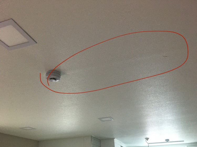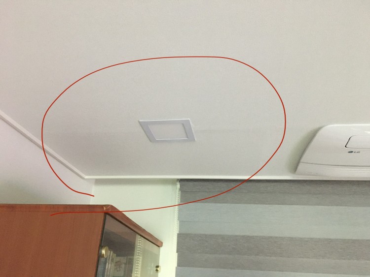 사진으로 봤을때, 천정석고보드 사이 (석고보드와 석고보드 이음새)