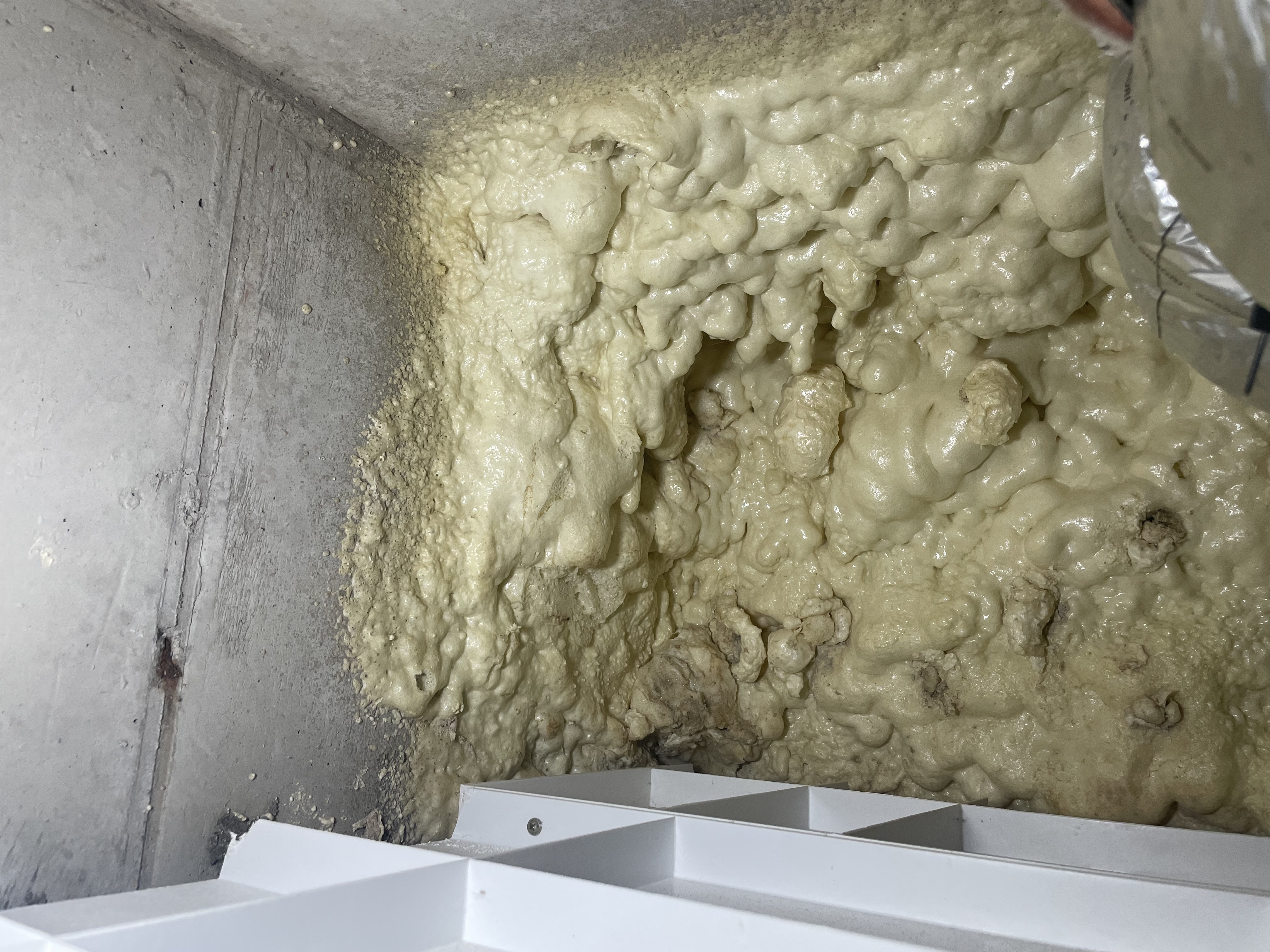 아파트 관리사무소에서는 제가 살고있는 집이 해당 부위의 결로가 심해 과거에 건설사에서 틈을 메우는 작업을 진행했었고, 그 때 당시에 단열이 잘 되지 않아서 그런것 같다고 하시네요..