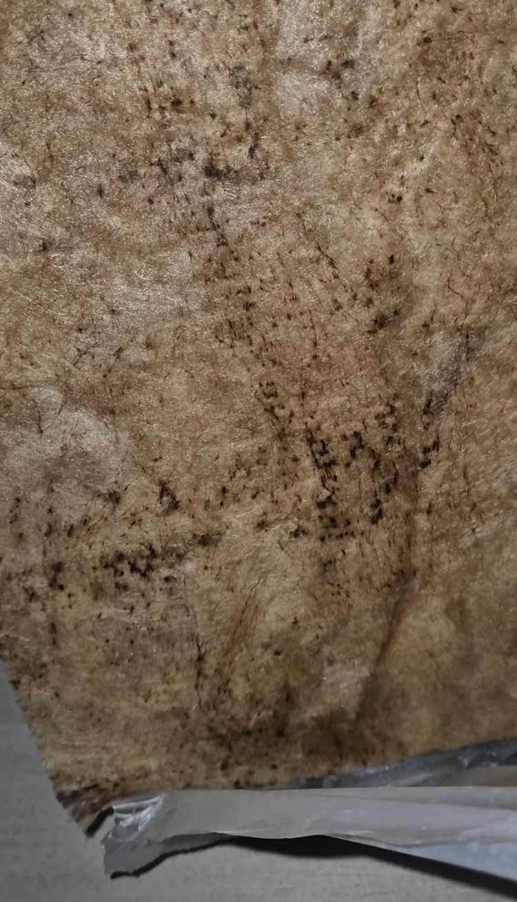 누수라면 훨씬 더 많이 양이 생성되었을 것이기 때문이며, 비닐 속의 글라스울은 제조 과정 중의 수분 때문에 이 정도의 곰팡이는 자연발생을 하는 편입니다.